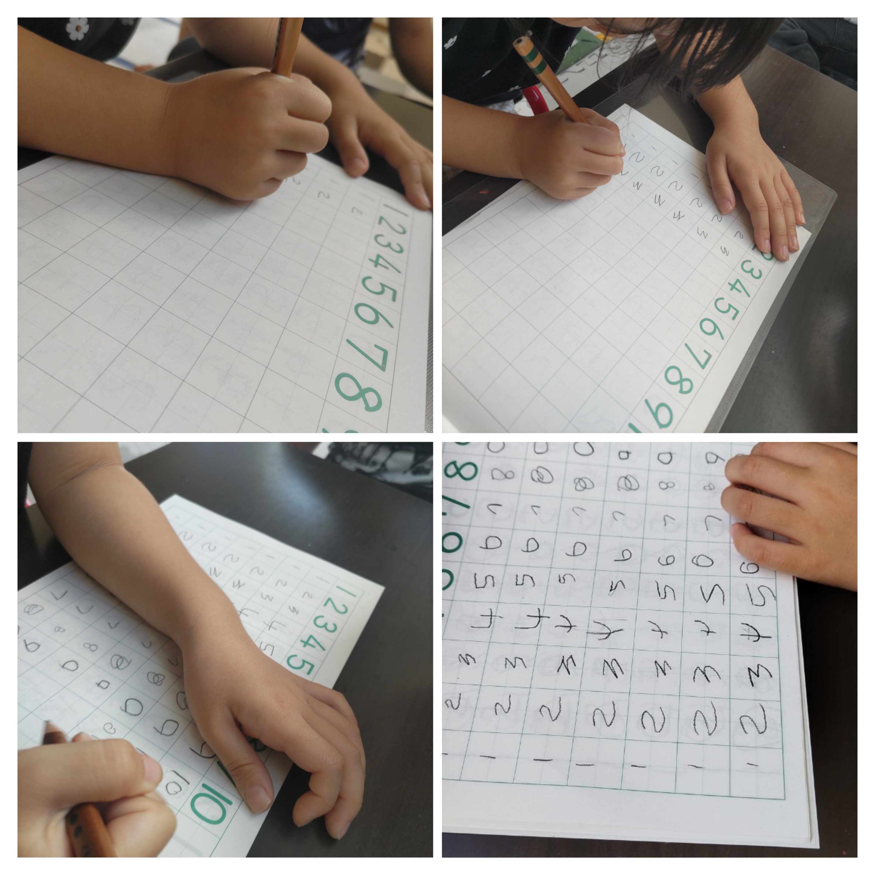と三角鉛筆とザラザラ下じきを使用し集中力高く無言で1〜10まで書き、最後の空欄には「11·21·31………」と自ら考え取り組む姿にとっても成長を感じました。