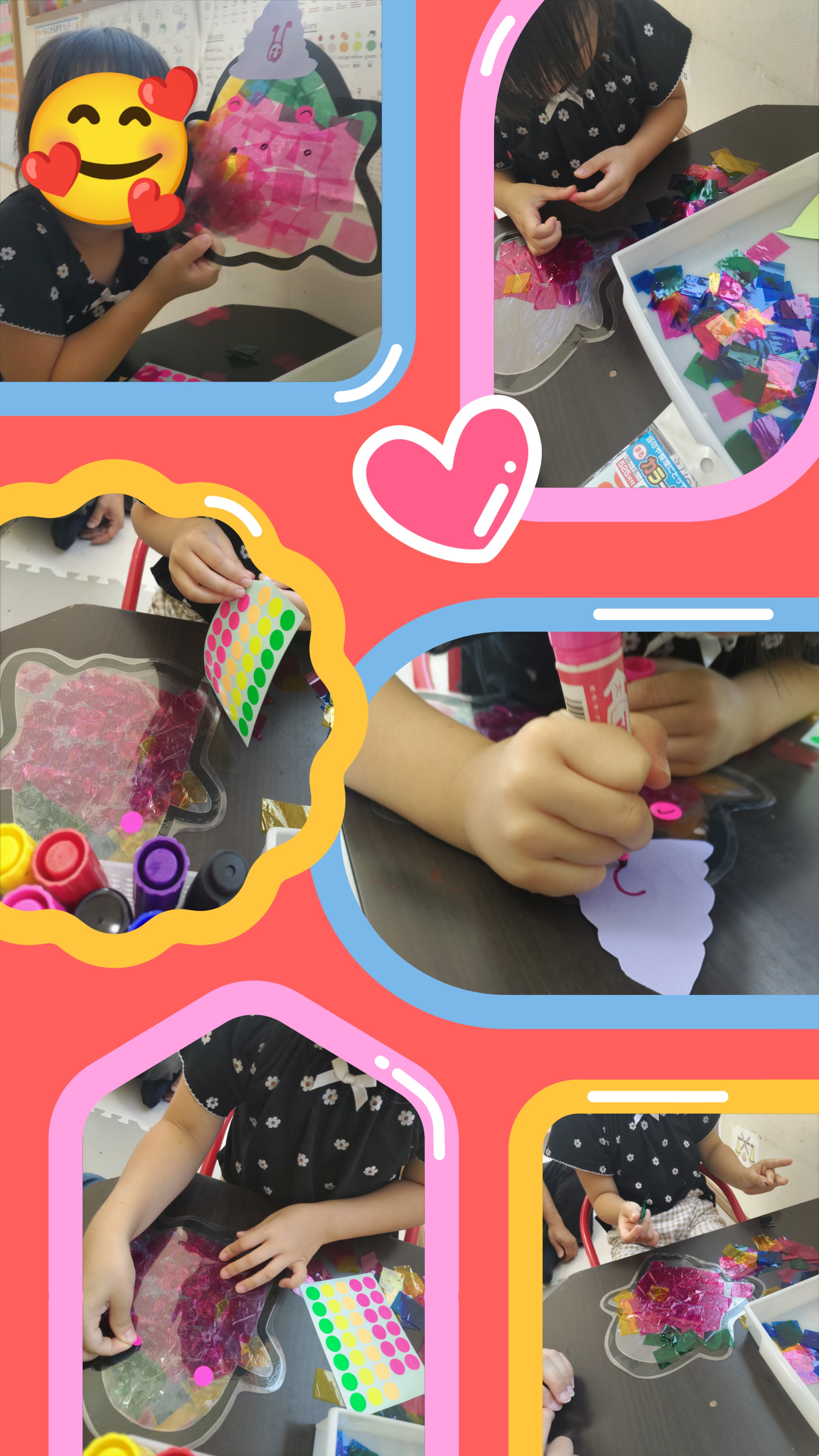と言ってた子も大好きなピンク色を手にペタ!ペタ!と取り組み始め「かわいぃ〜(♡ω♡ ) ~♪」