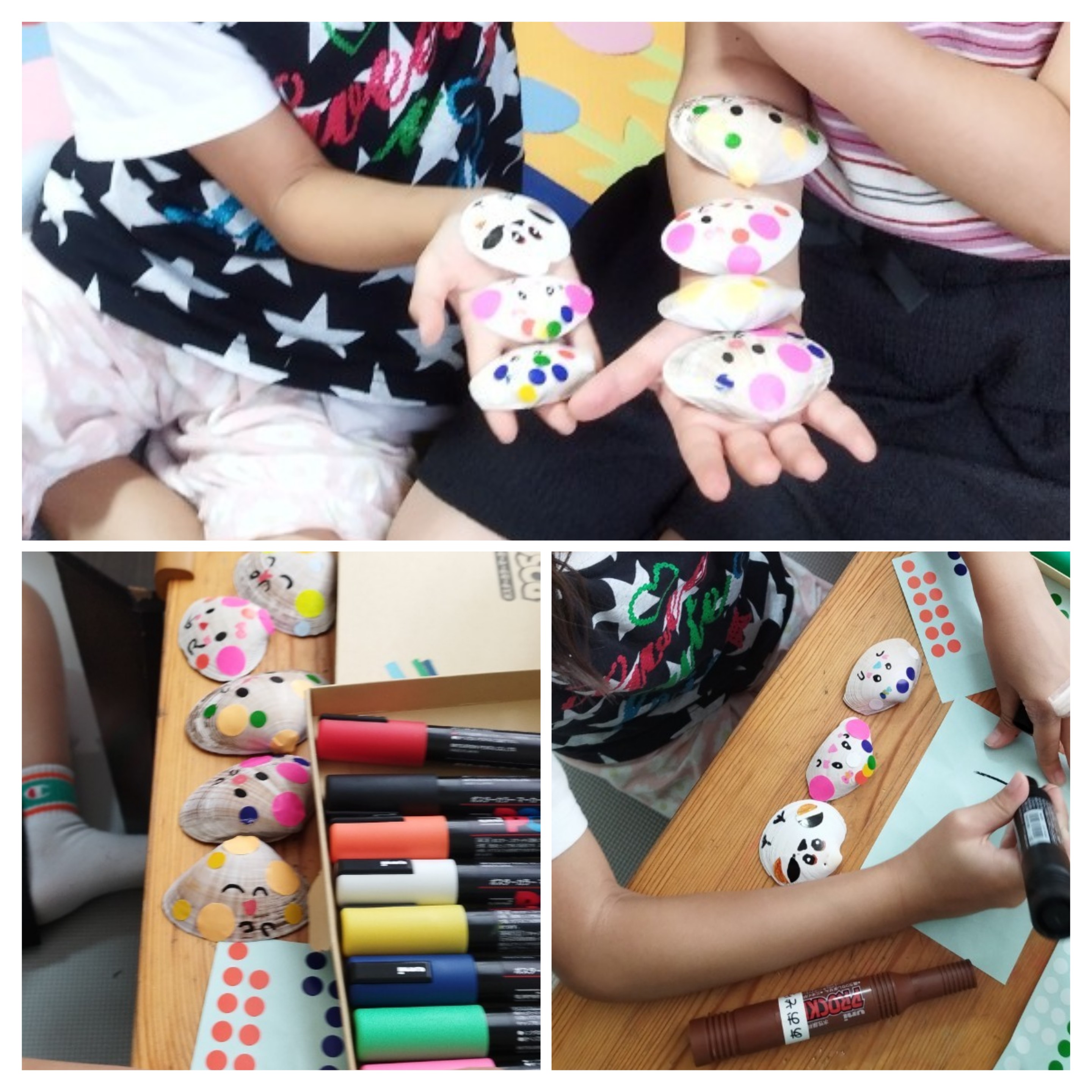 みんなで描いた貝殻アートは、素敵な一つの作品になります( ꈍᴗꈍ)