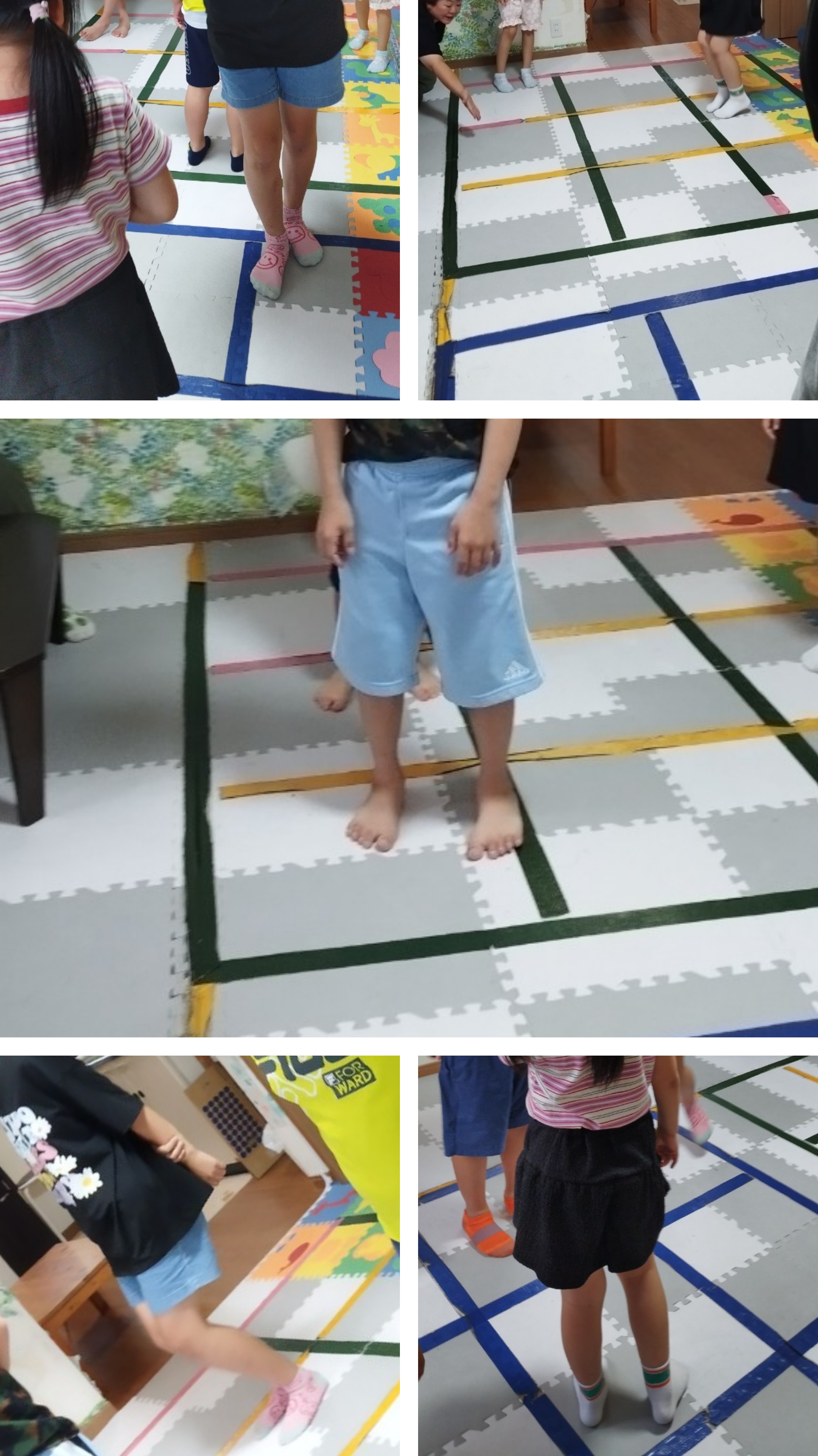 3回鳴る笛の音に合わせマスを移動し鬼と同じマスになってしまったらマスから抜けますよ。