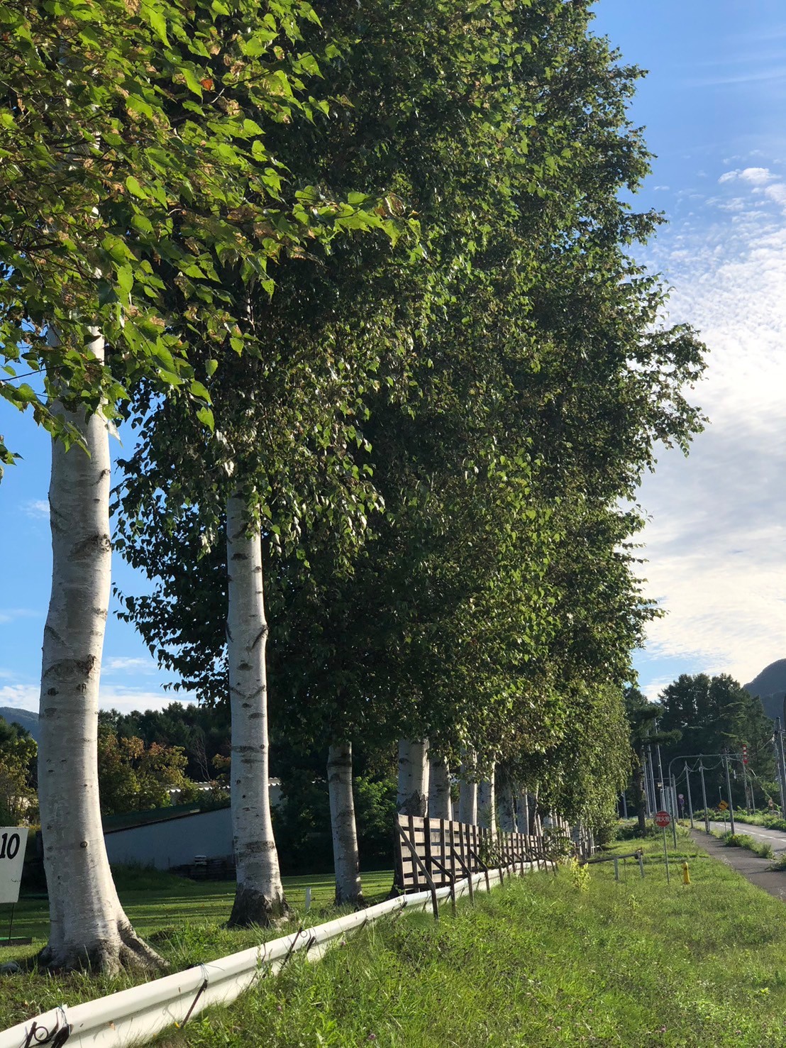 鳥崎球場の白樺並木。