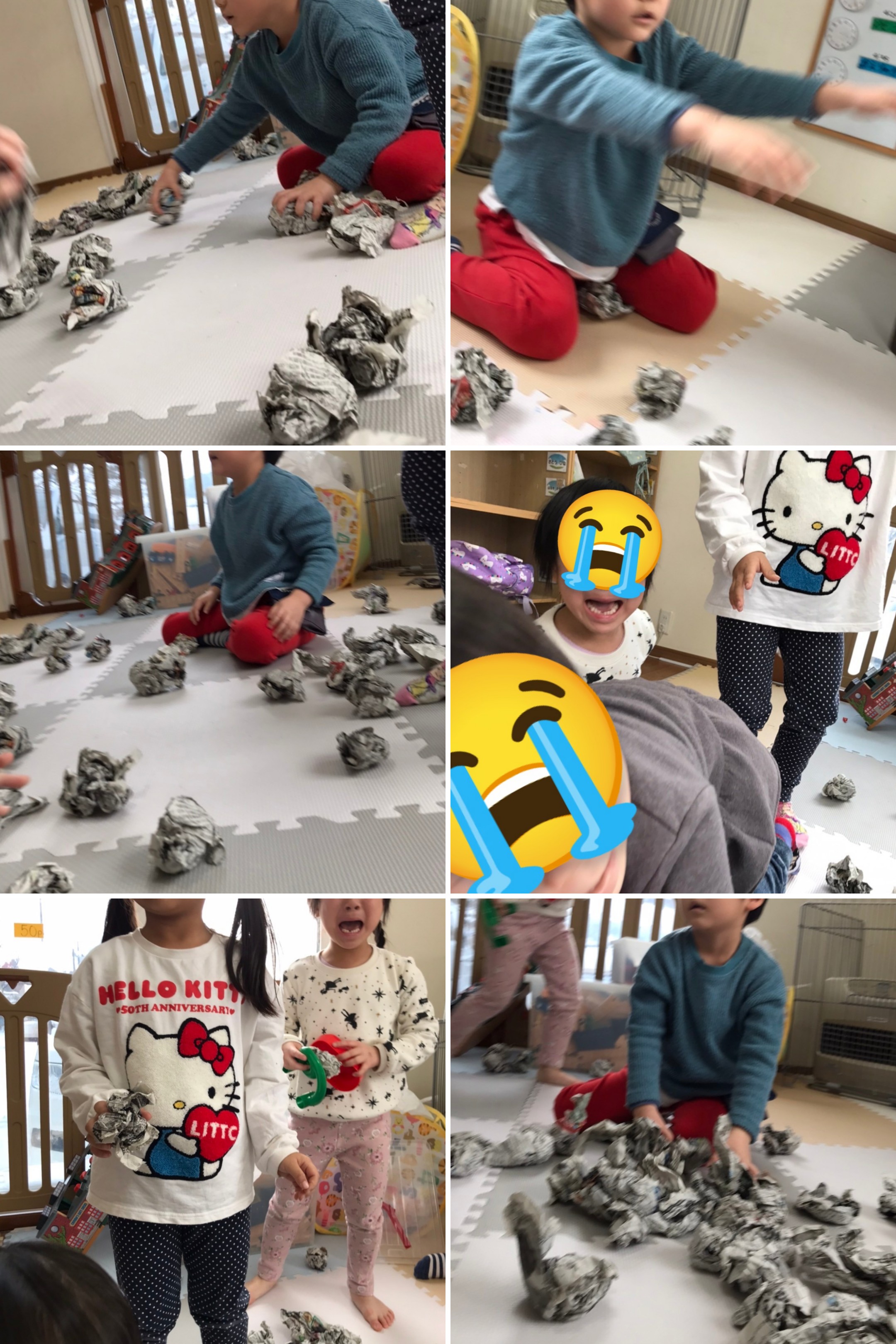 豆の変わりに丸めた新聞紙を必死で鬼にぶつけます!!