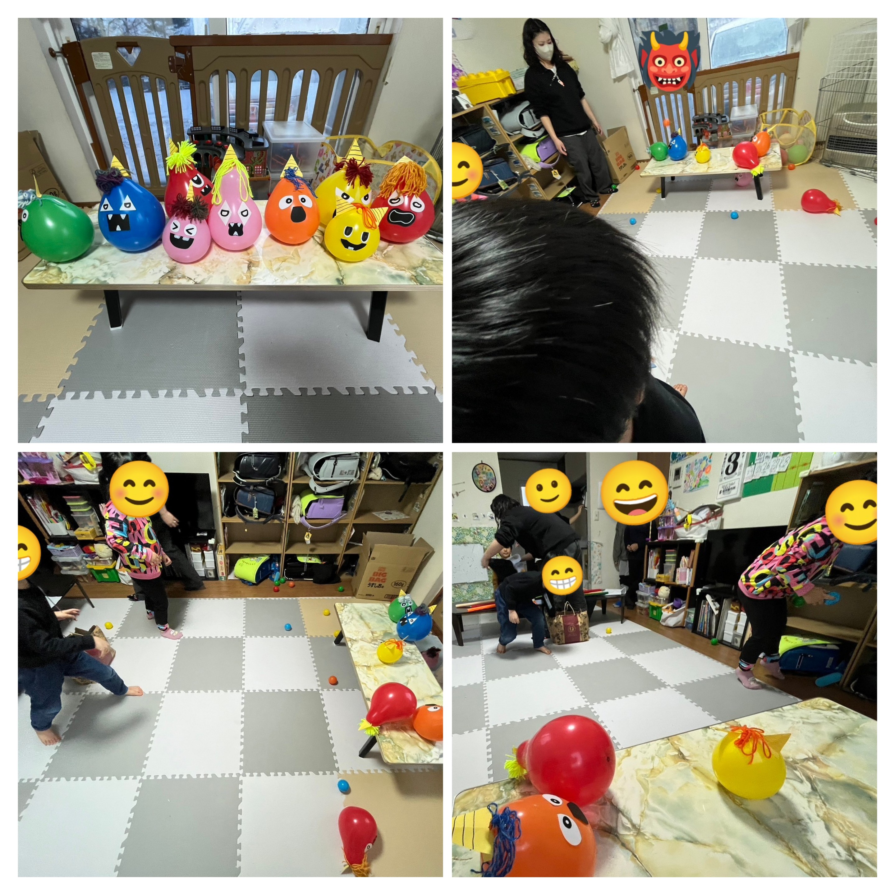 「今年の節分イベントは恵方巻き作りと風船鬼退治です!」