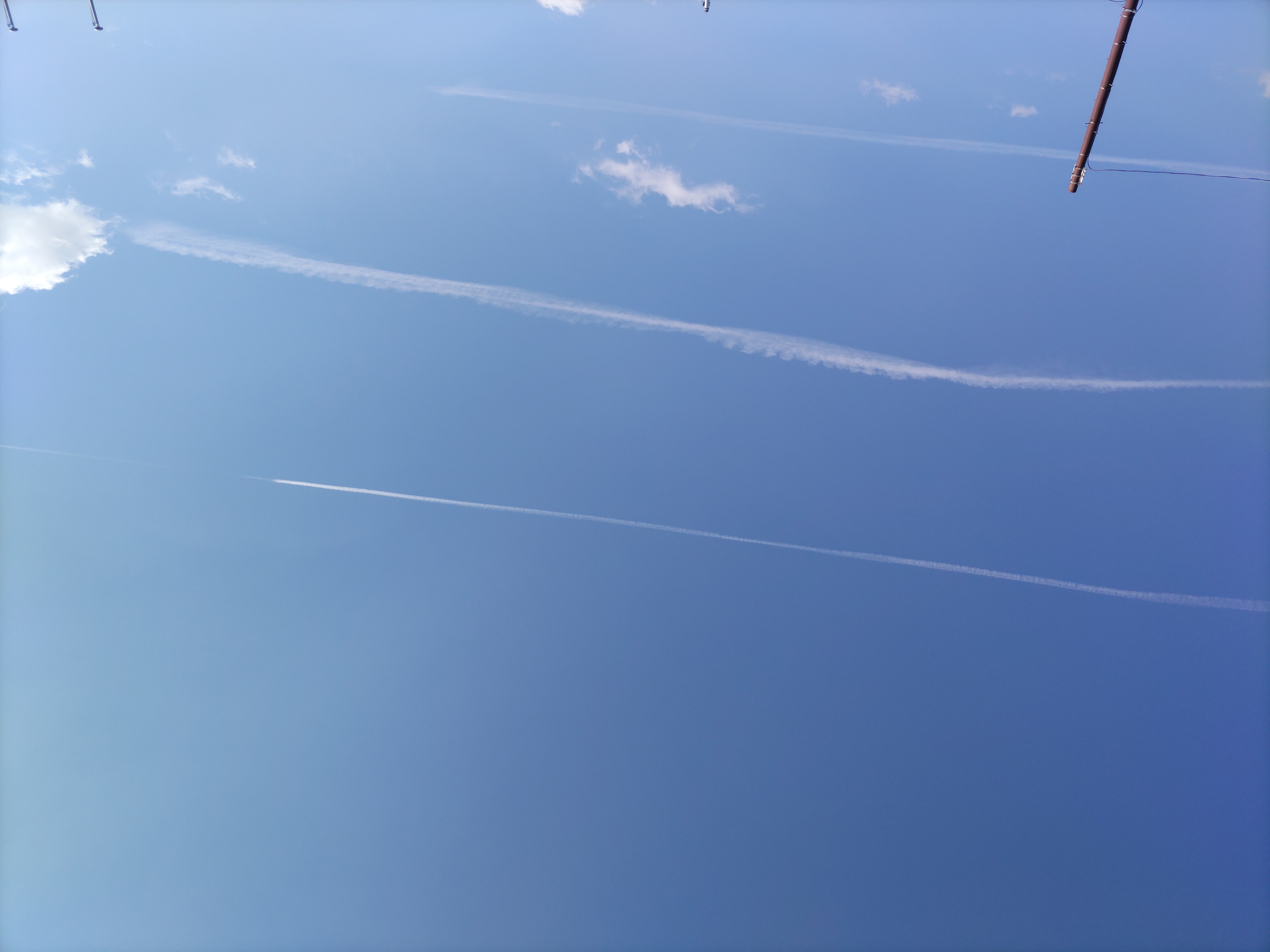 見上げた空には真っ直ぐ伸びる飛行機雲。