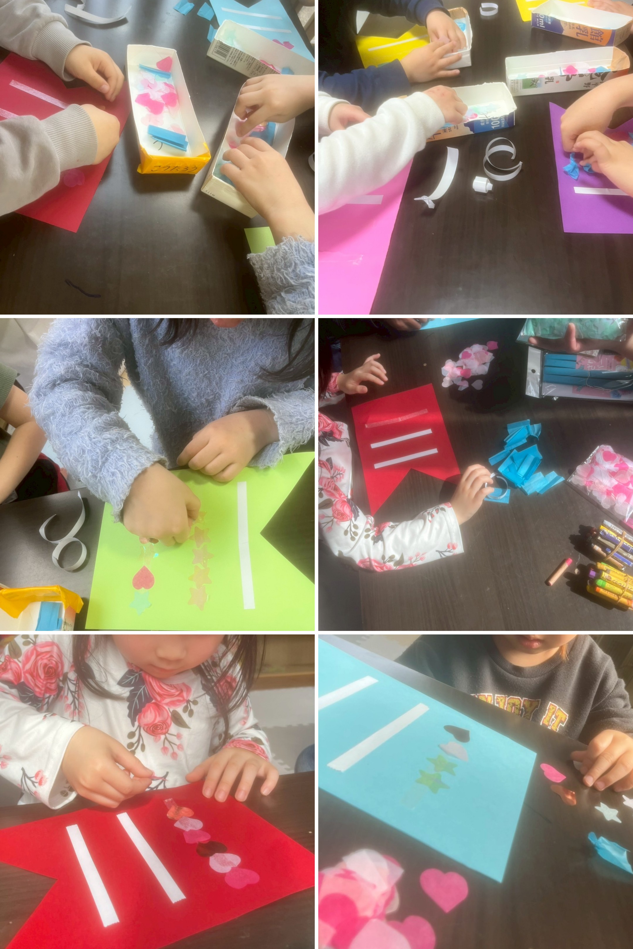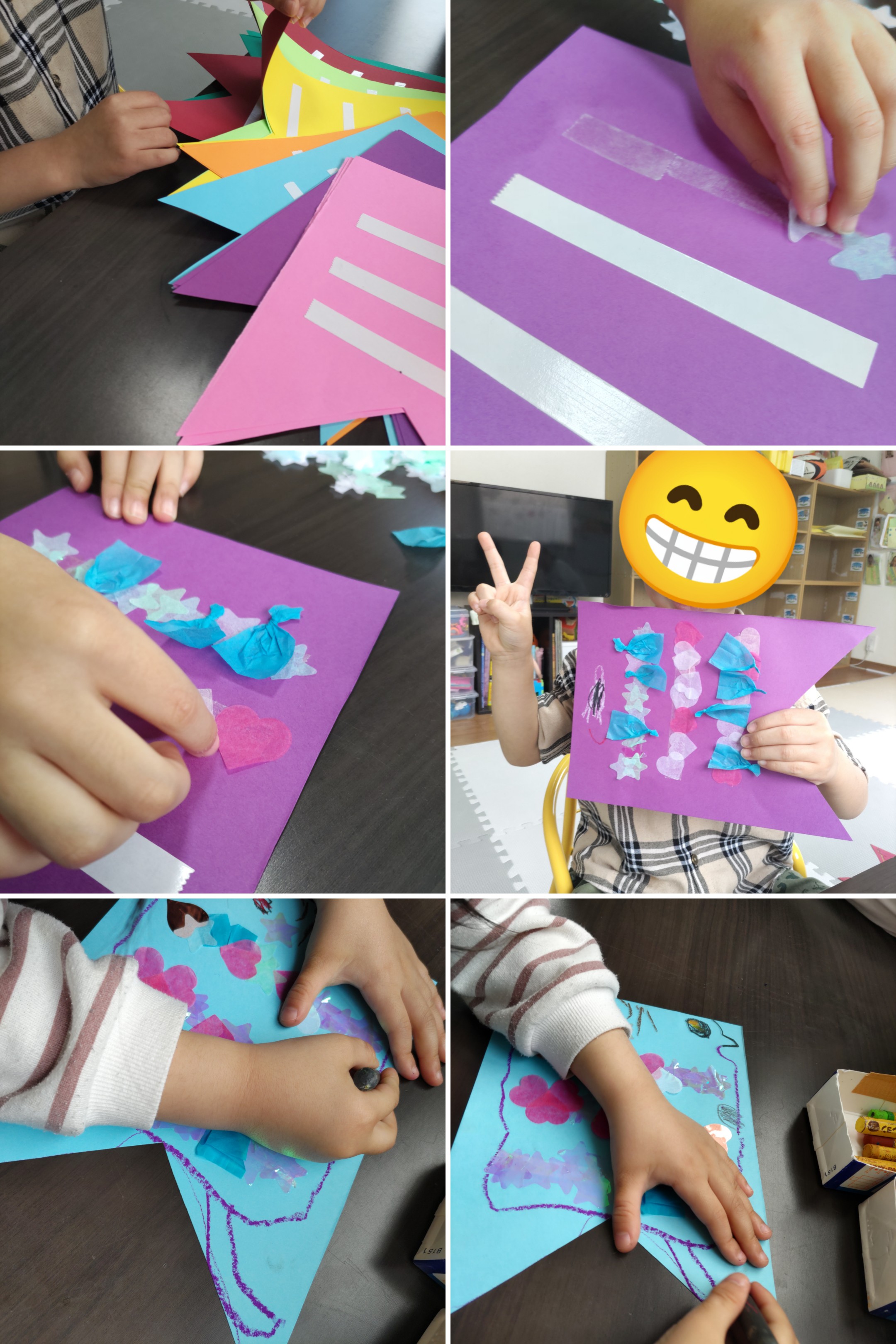 好きな色の画用紙を選び、鱗をペタ!ペタ!!