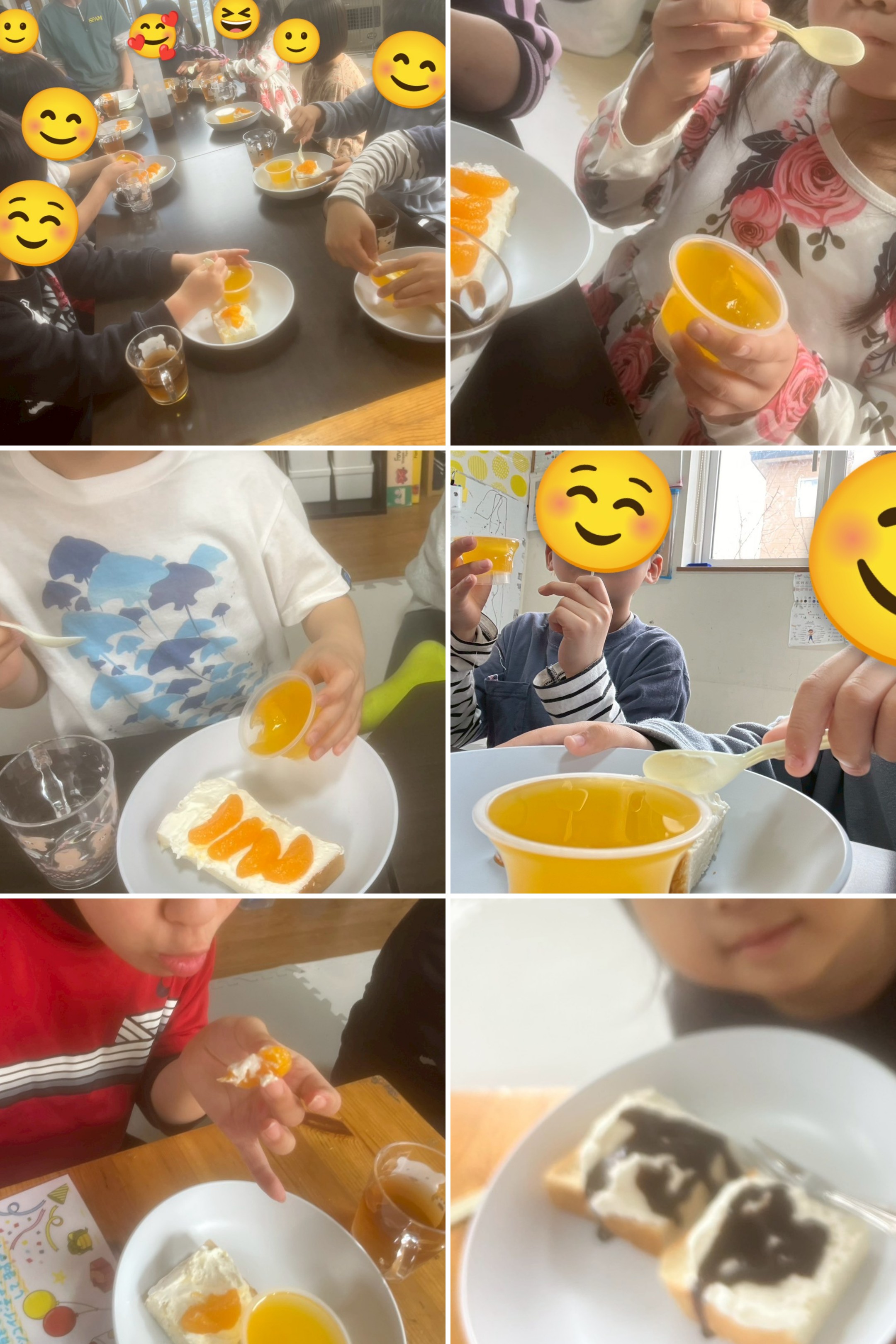 特別おやつは、誕生月の子が大好きなミカンをメインに、