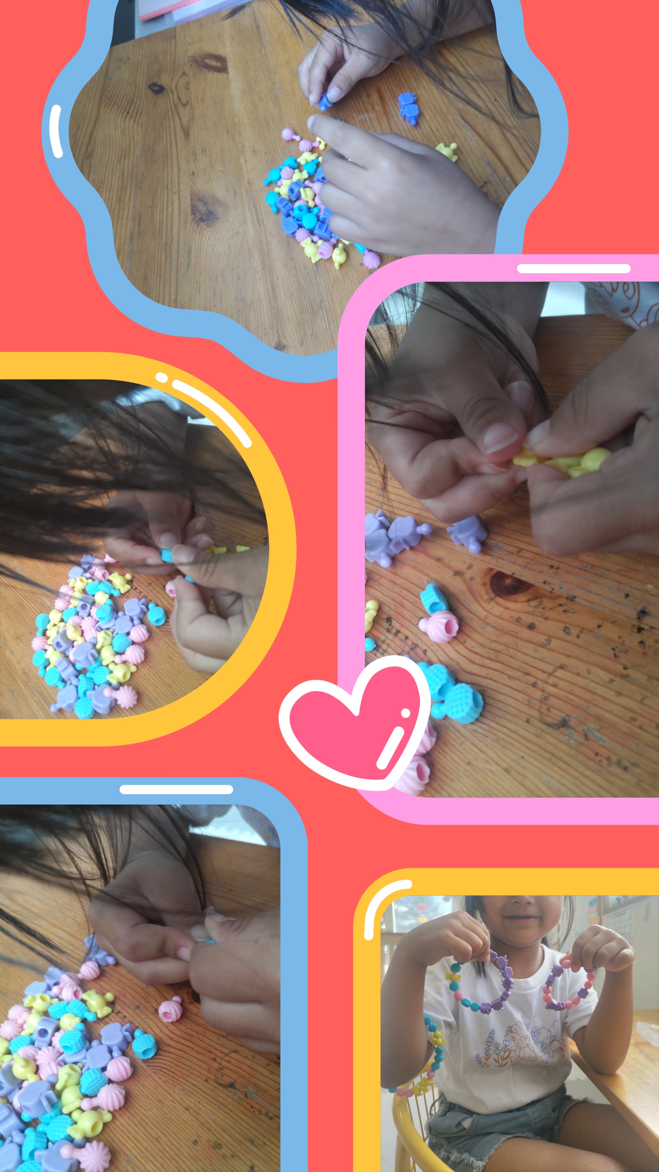 指先の力強化のプチプチビーズ繋ぎ。