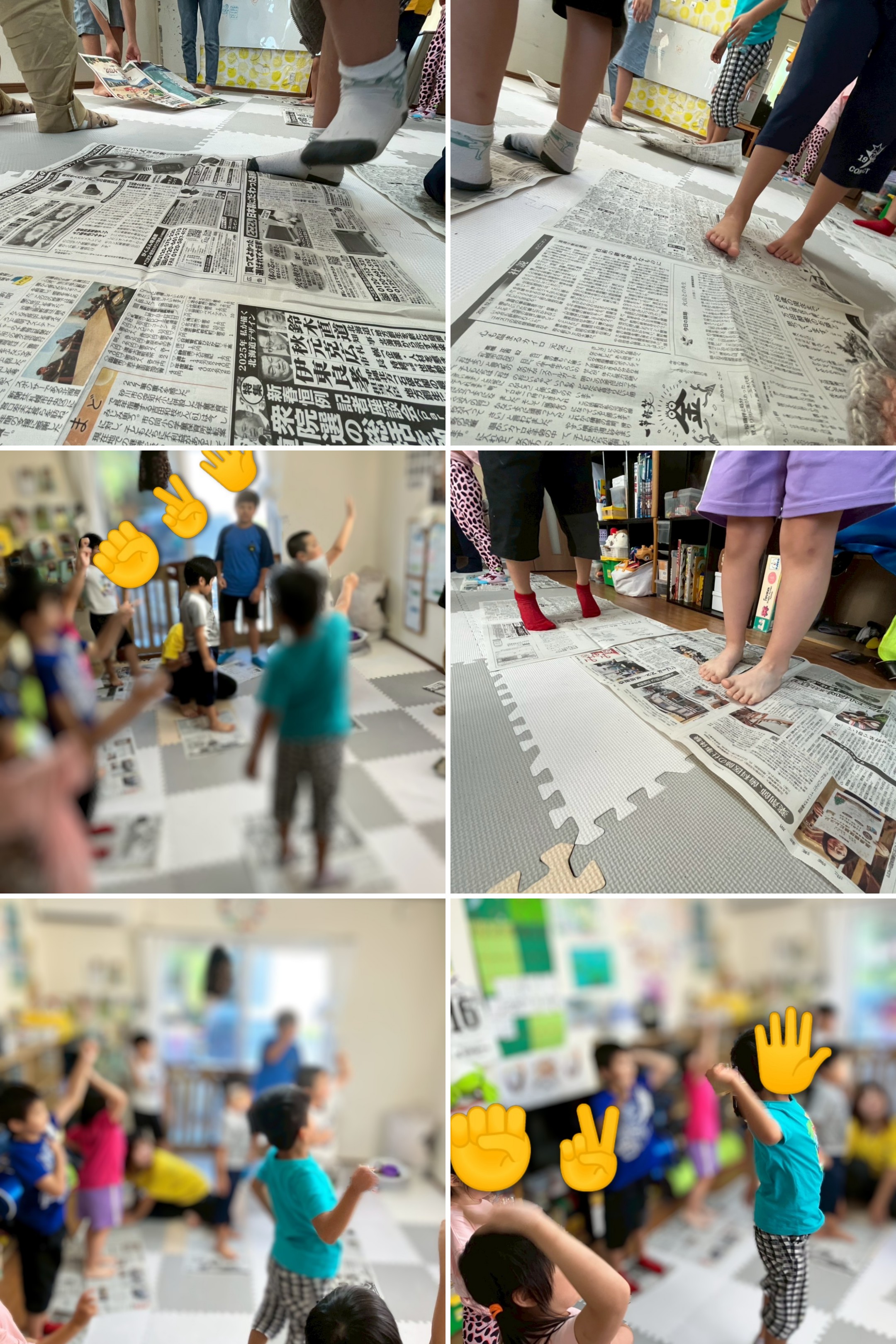 今回の新聞紙ジャンケン前半戦は職員に勝った子、あいこの子は新聞紙の大きさそのままで。