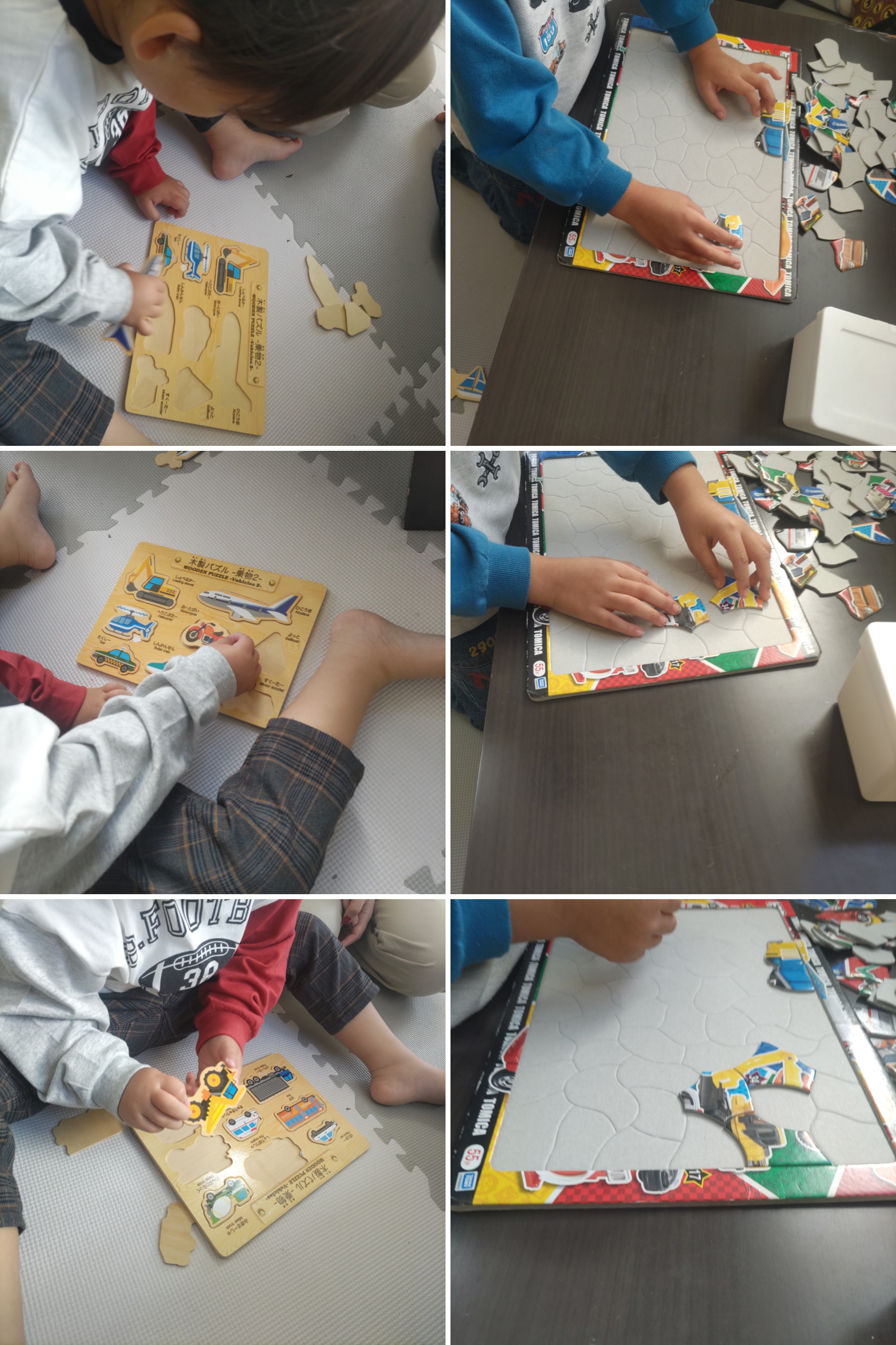 「ひこうき!オートバイ!」等発語しながら全て完成した時の達成感溢れる笑顔キラキラでした(◍•ᴗ•◍)✧*。