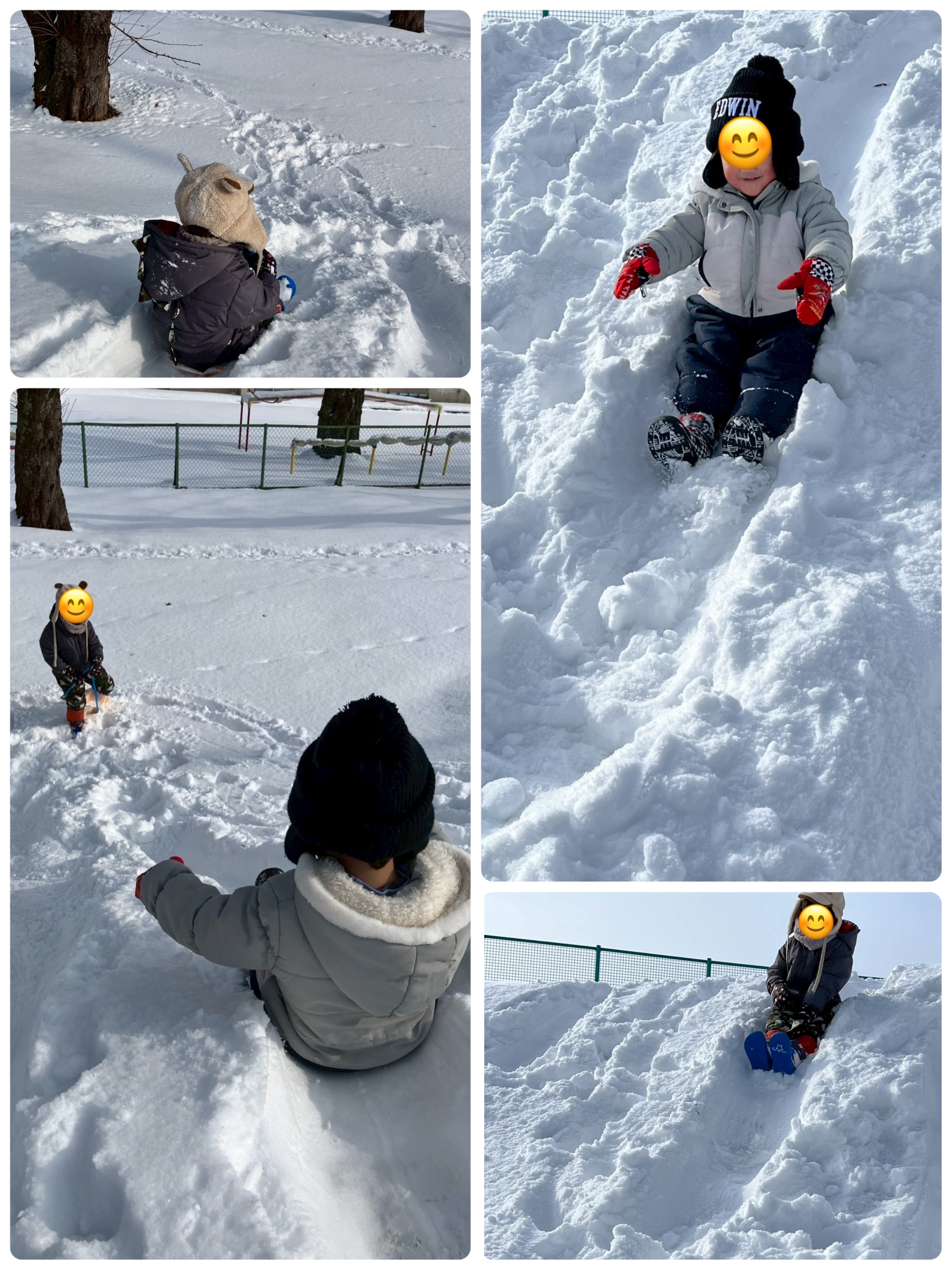 小さなお山から、ぴゅーんと滑り台!いい表情☺︎