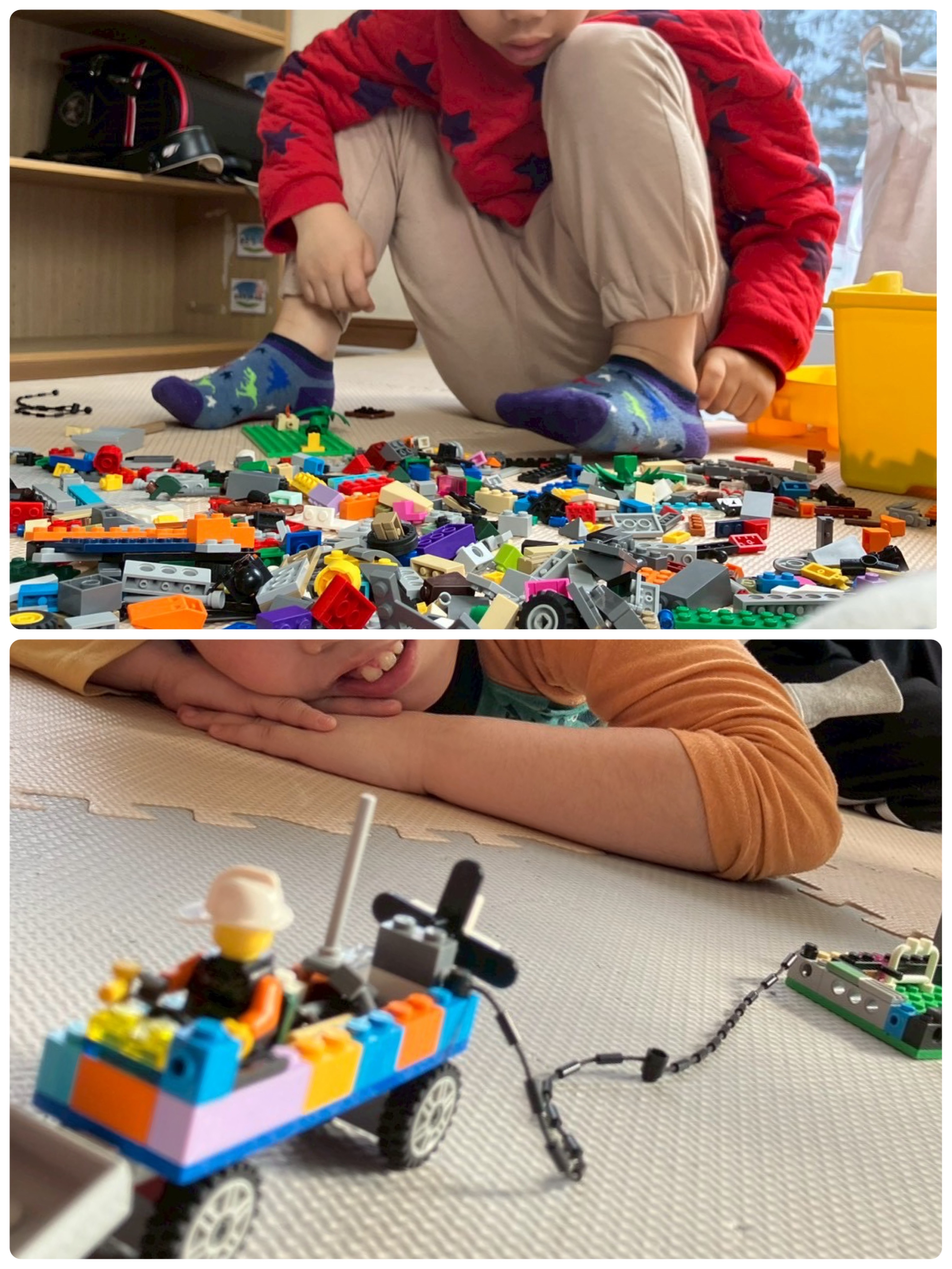 創造力豊かなみんなは、レールを作ったり、お家を作ったりと