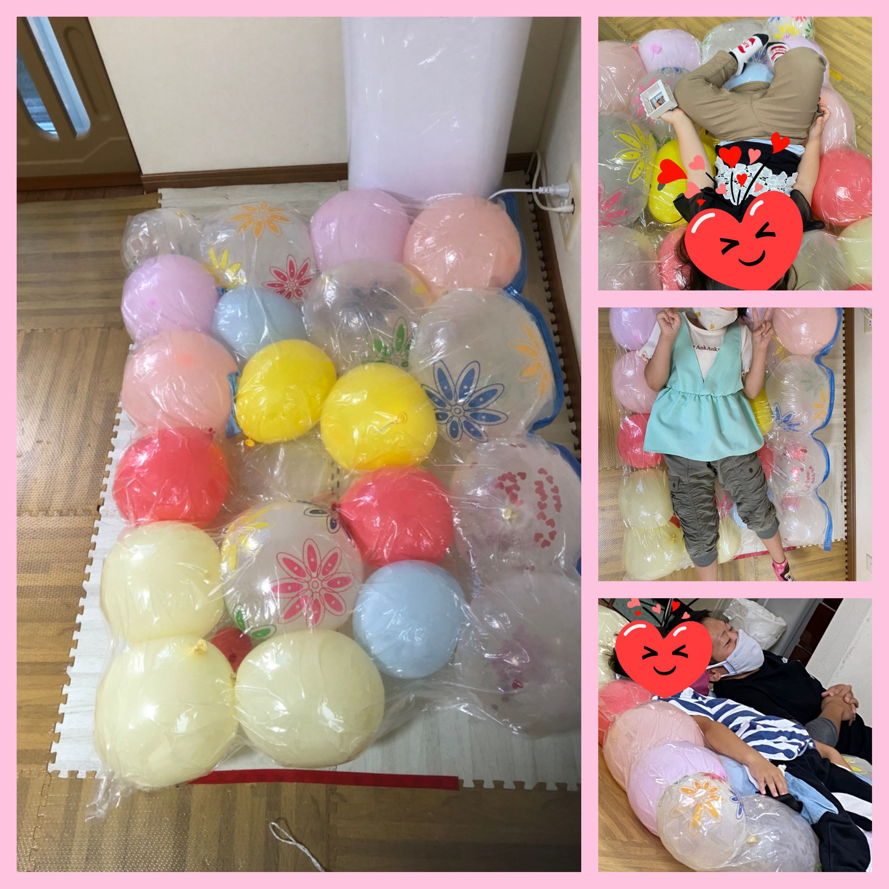 夏祭りのデコレーションで使用した風船を再利用し、風船ベッドを作りましたよー(*ノ´∀`*)ノ