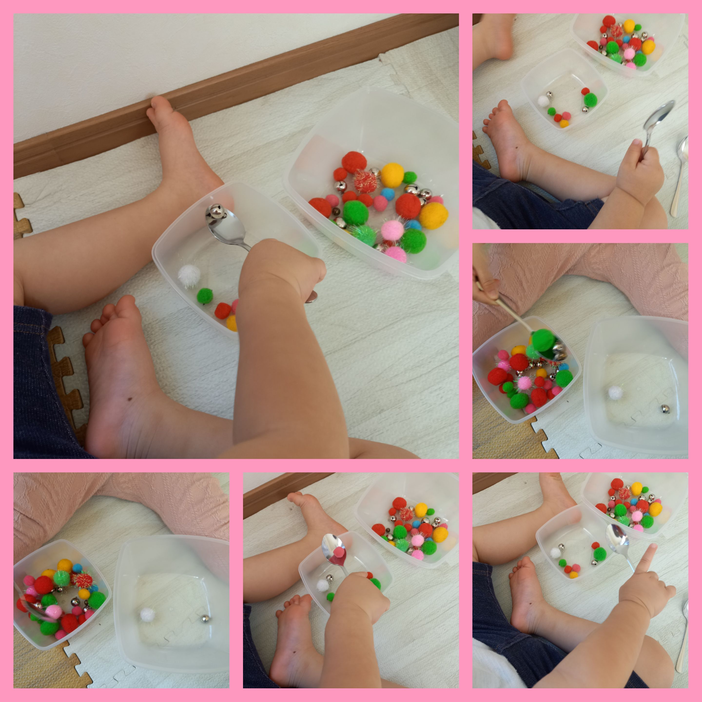 鈴や小さいモケモケ玉を容器に移します。