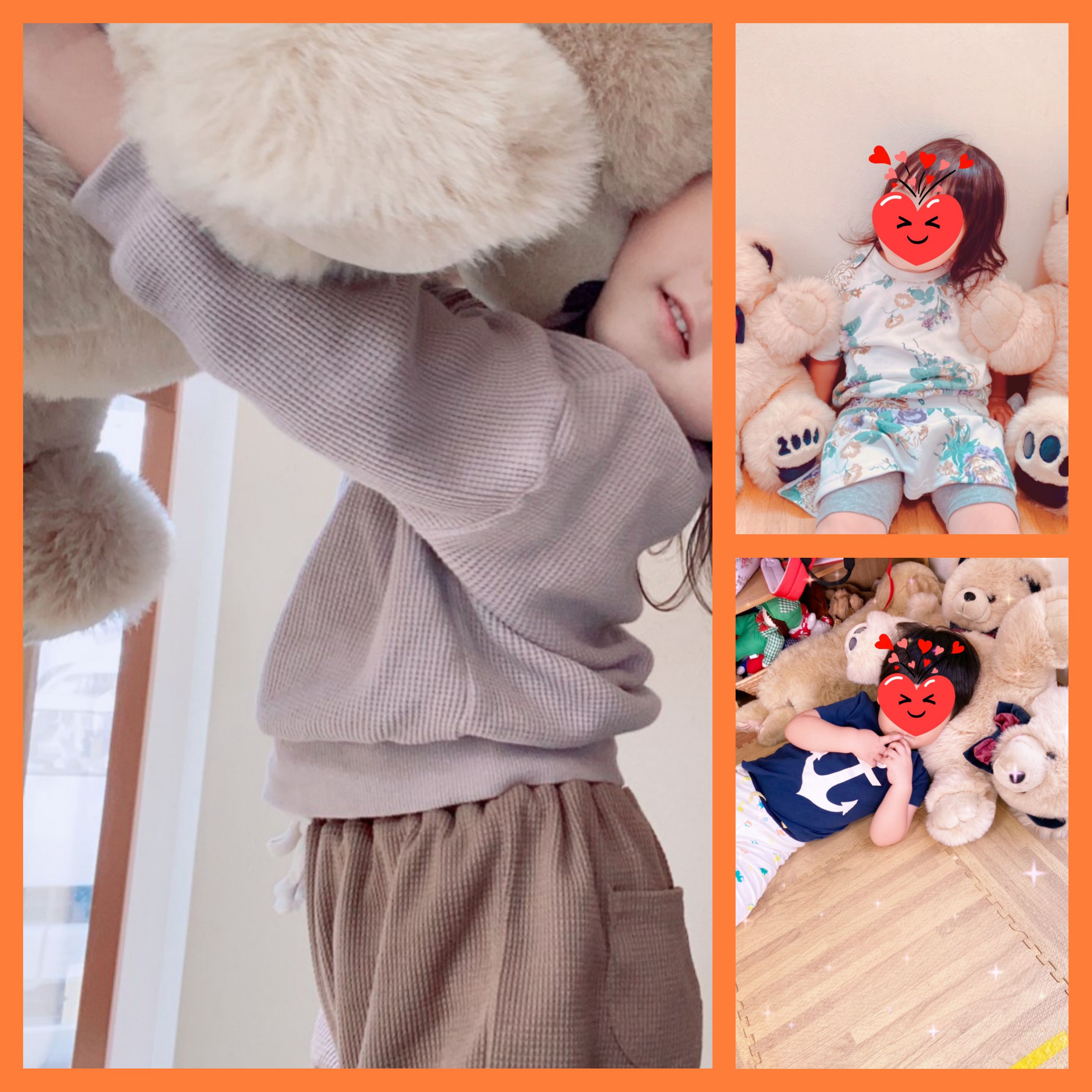 優しく抱き上げたり一緒に並んで座ったり、時に馬乗りのようにクマさんに乗ったり( ゚ロ゚)!!枕にしちゃったり(゚Д゚)!!