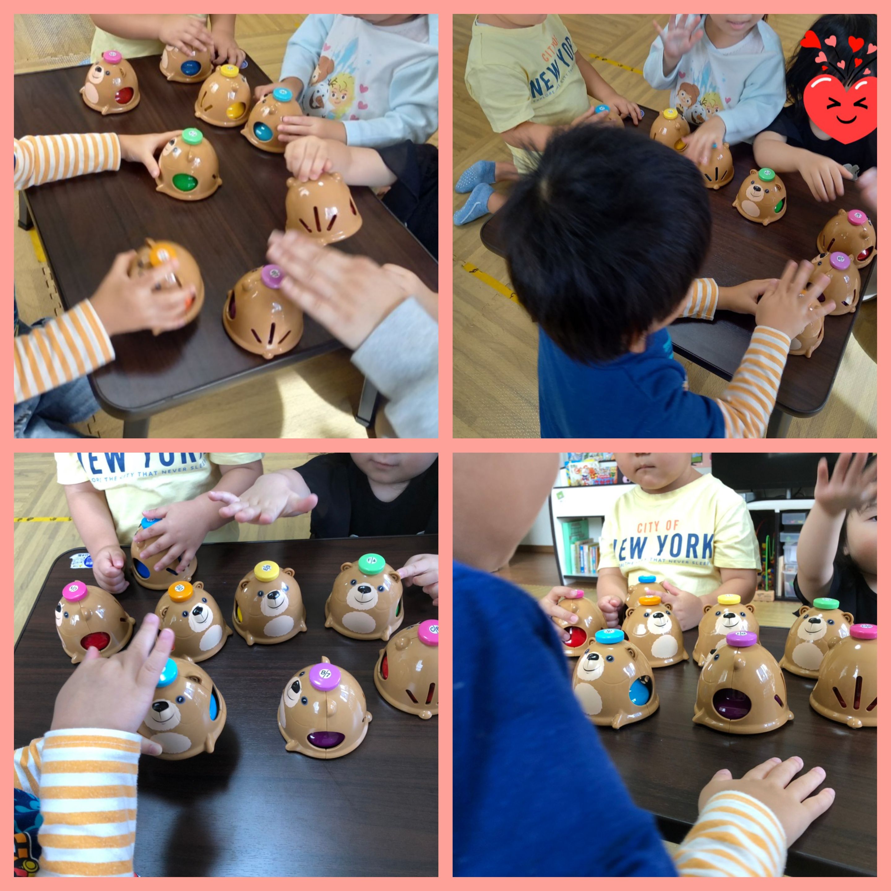 くまさんの頭をポンポンするとドレミファソラシド音階がついてるデスクベルにみんな笑顔で夢中♪