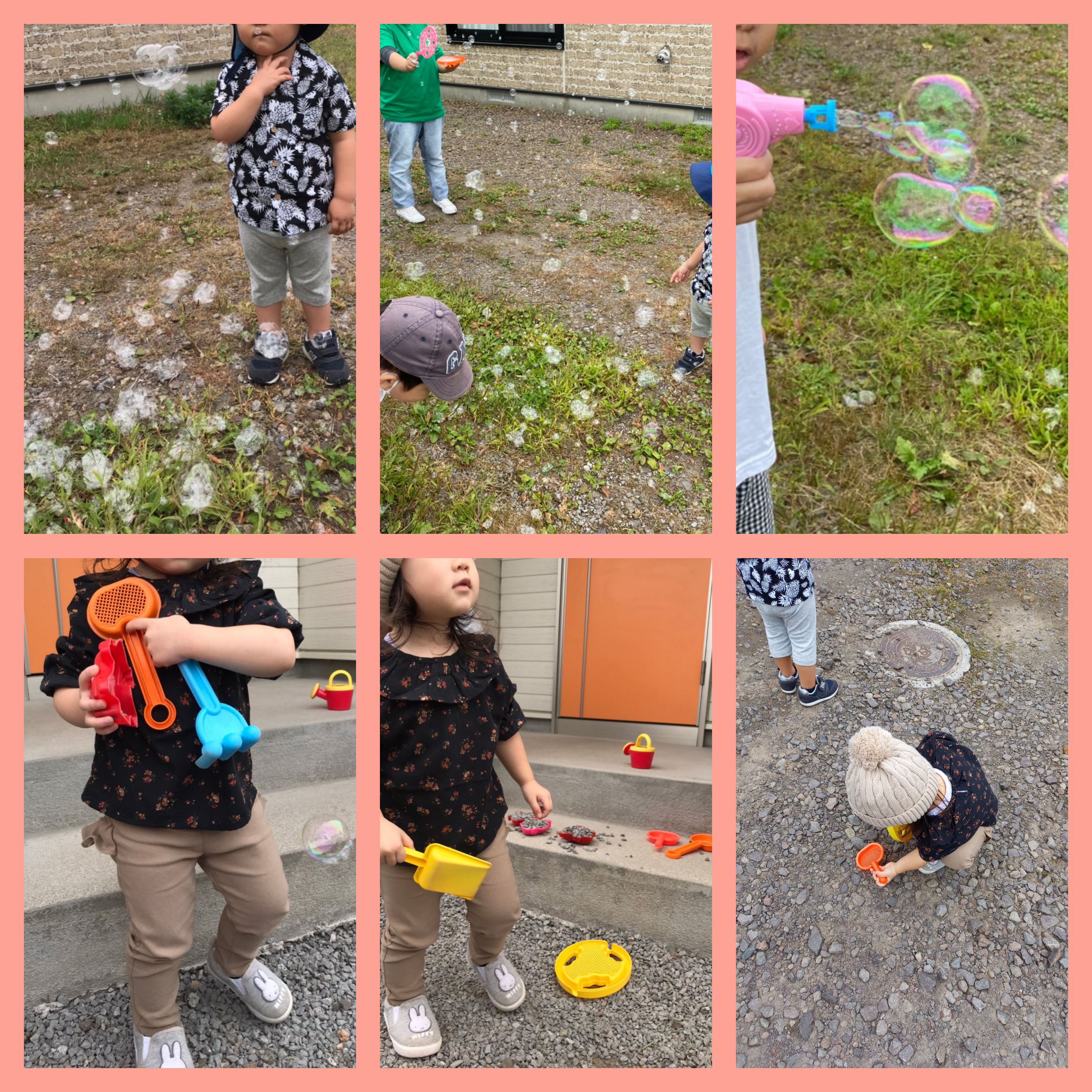 シャボン玉や砂遊びに夢中で楽しみました(*^▽^)/★*☆♪