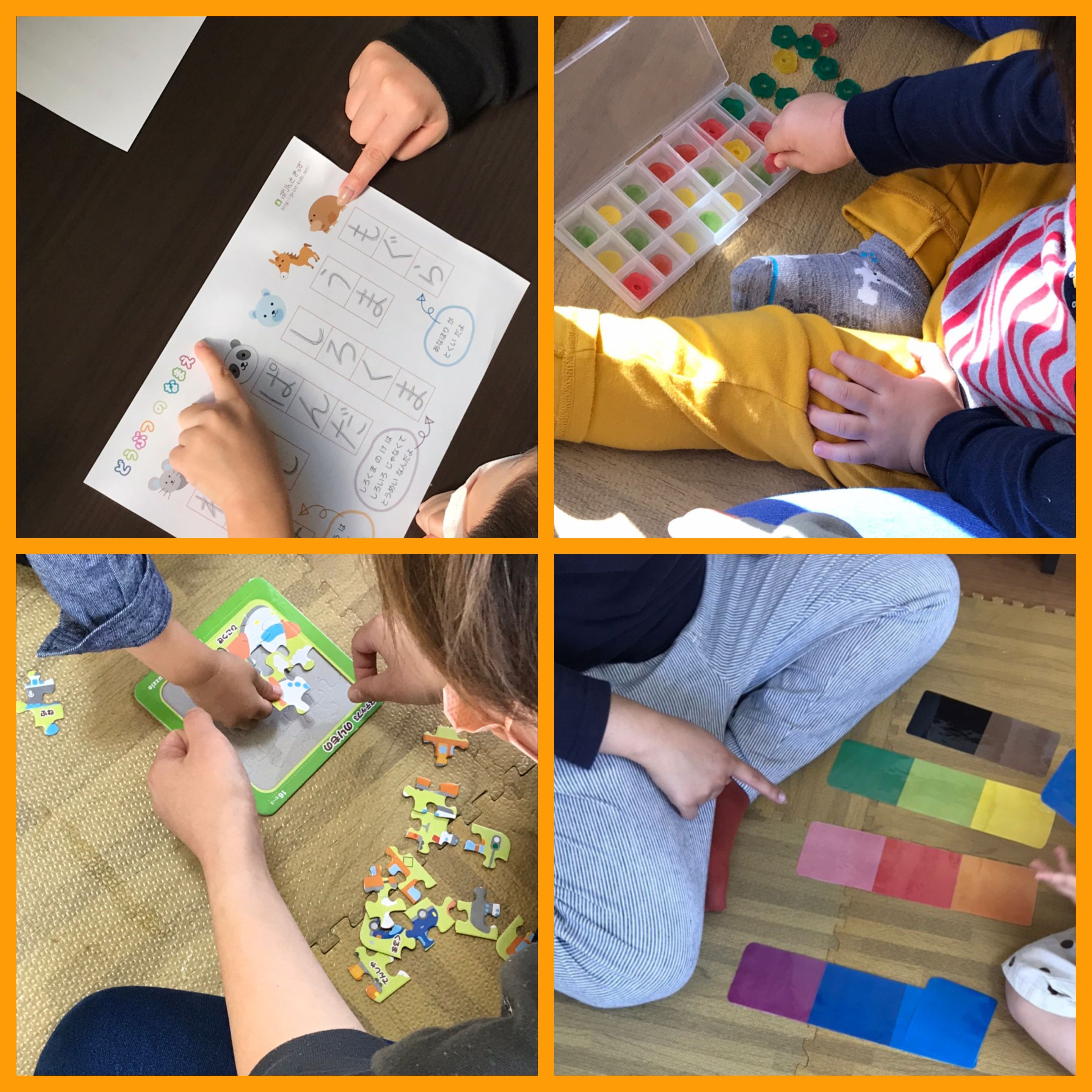 特性別に好きな感触や感覚を知り指先を使った細やかな作業を行い視覚+聴覚+触覚を大切に発達、習得に繋がるよう取り組んでます。