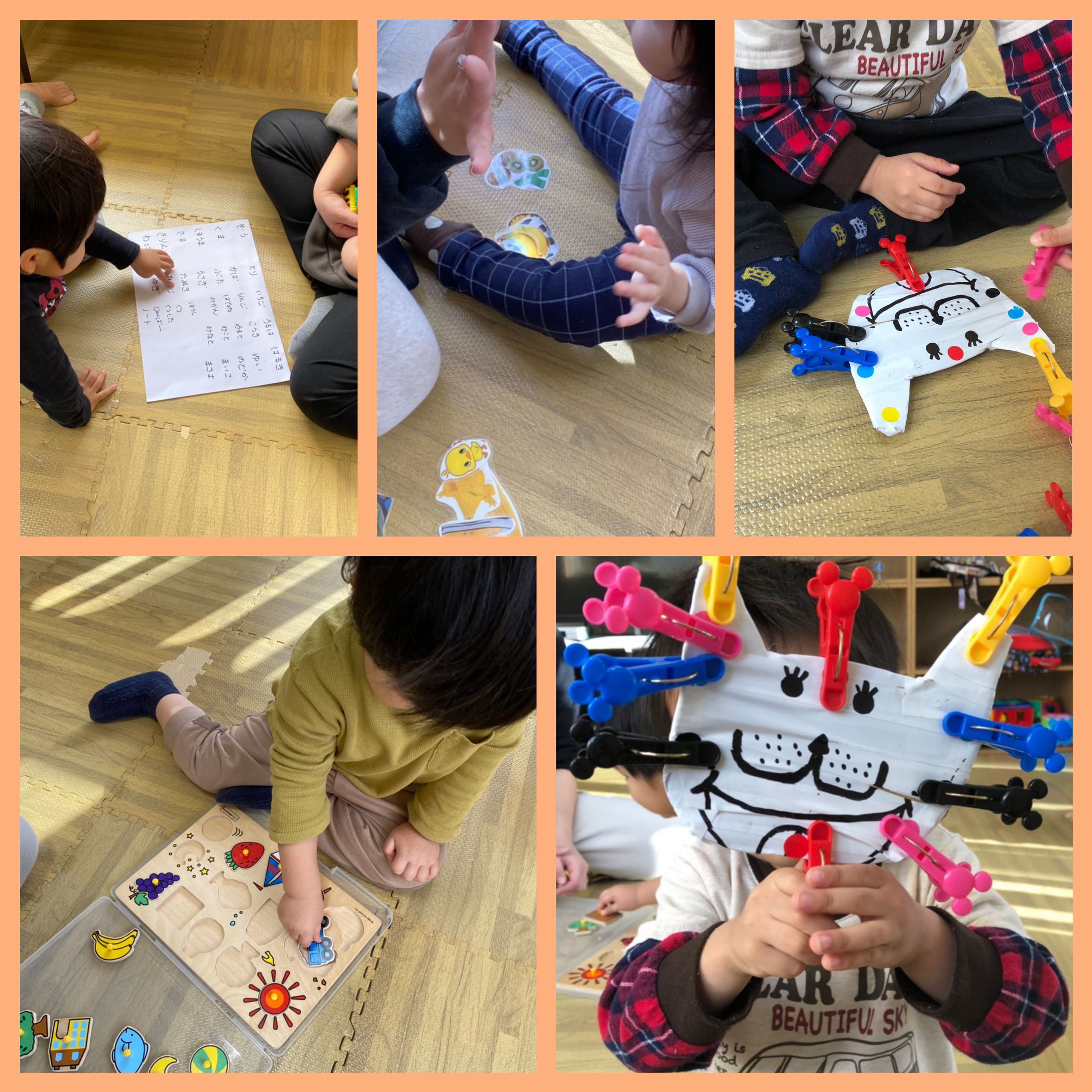 楽しみながら指先、聴覚、視覚の発達に繋がる個別課題学習。