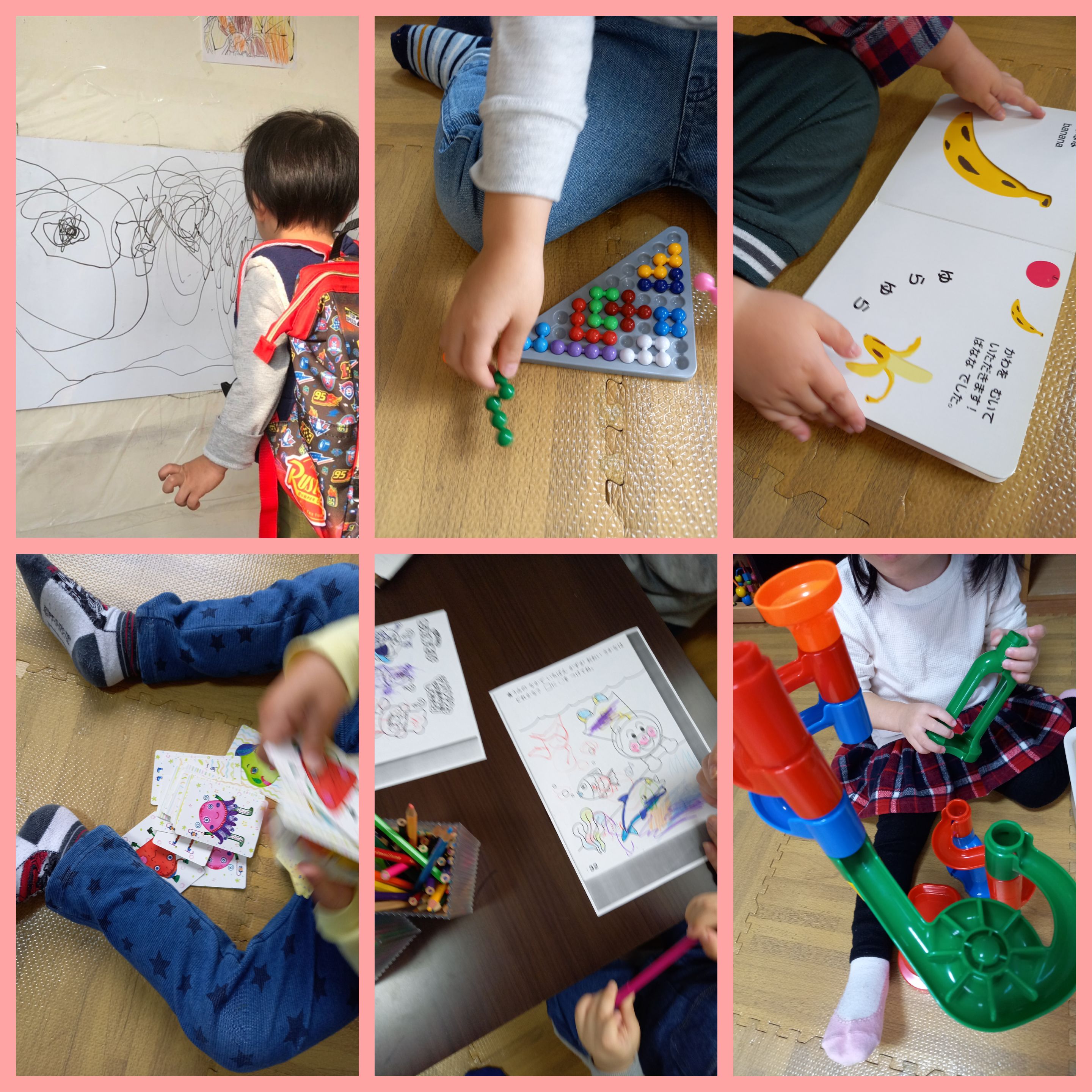 個人活動ではお絵描き、ぬり絵、カード遊び等子供達がそれぞれ興味津々な所へまっしぐら!