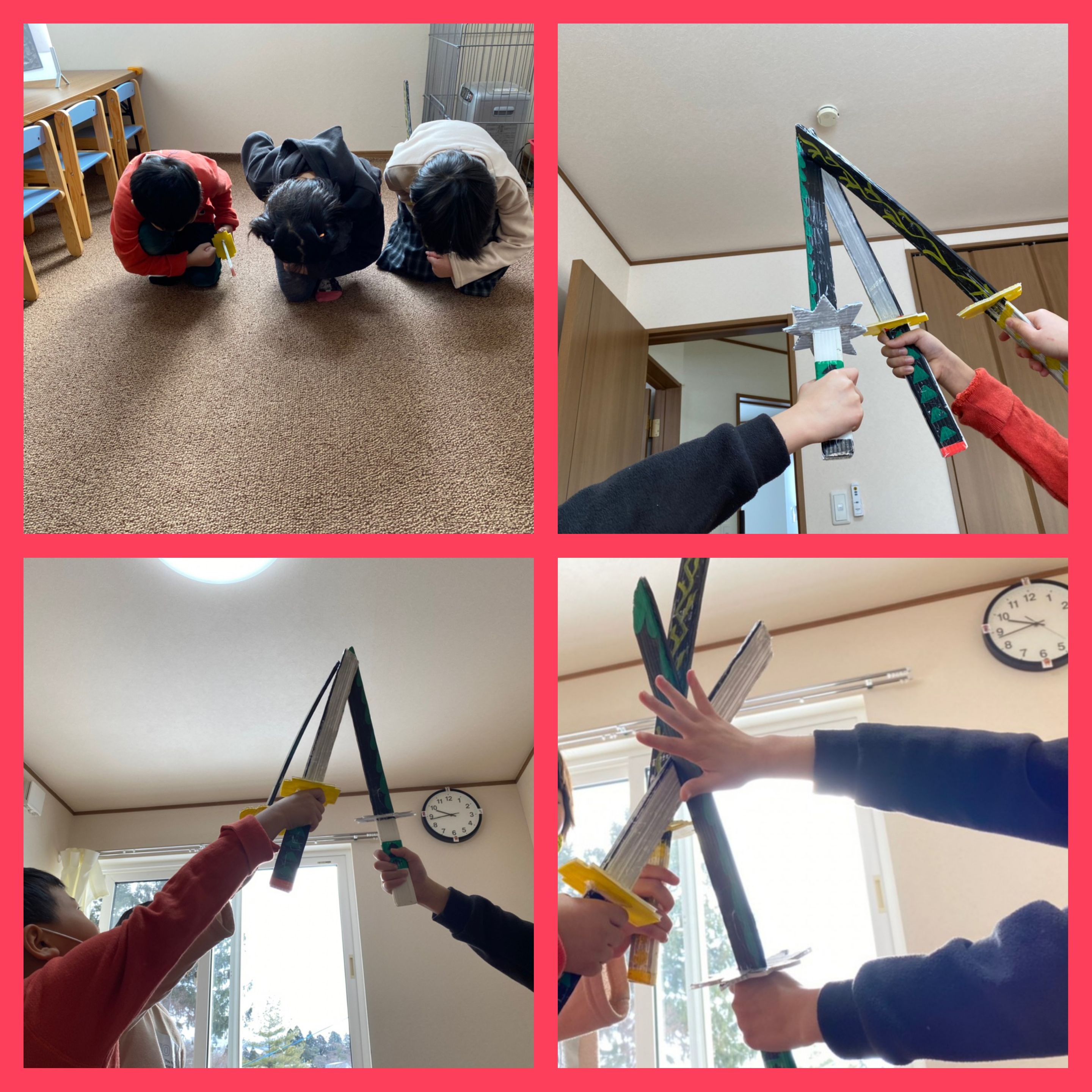 先生が柱の刀を制作してくれて、みんな各柱になりきり戦ってました(^w^)