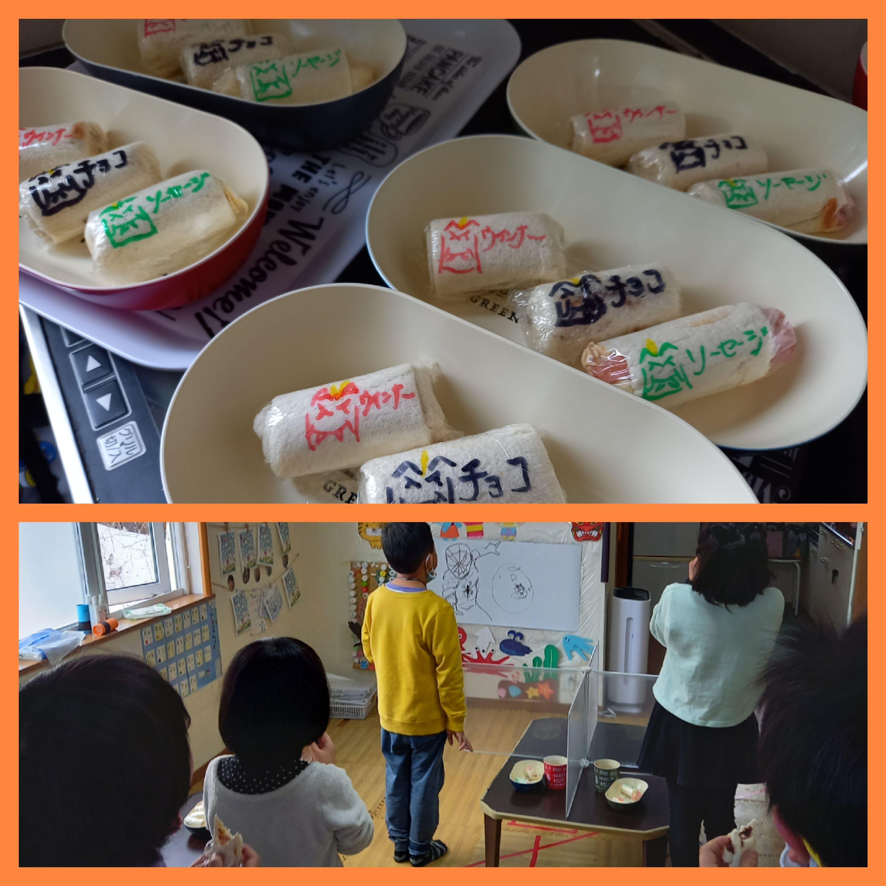 鬼を無事退治し、おやつタイムでは食パンでミニ恵方巻きを先生作りました(*^o^)/\(^-^*)