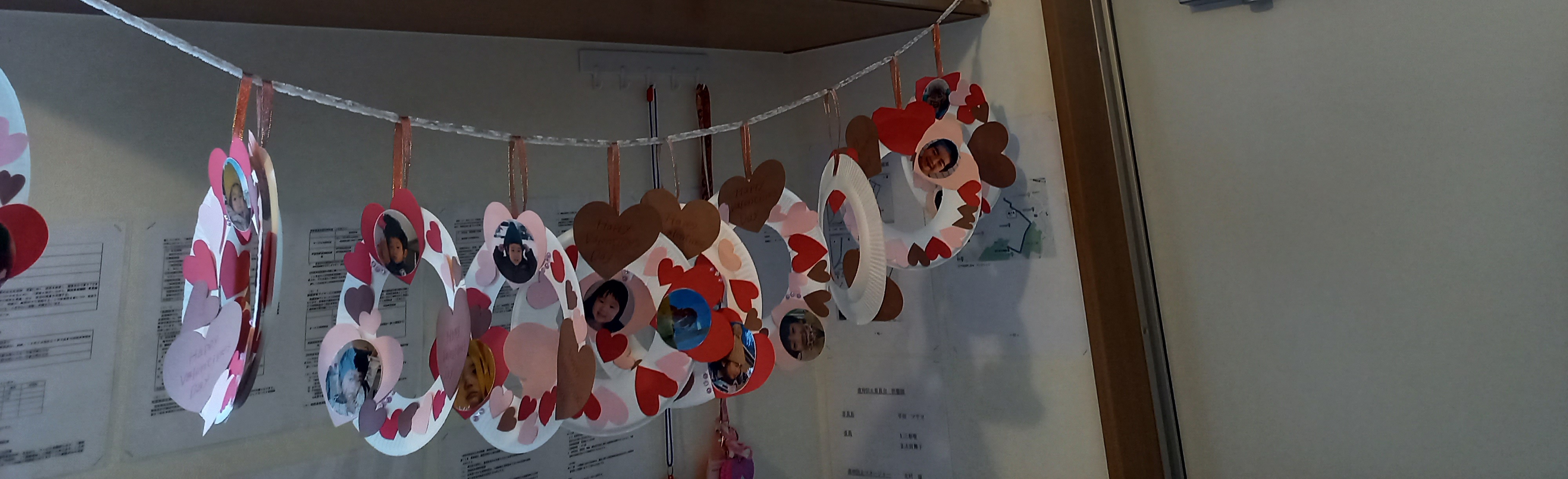 ハートの中に写真も張りオリジナルバレンタインリースの完成ですー(^-^)/