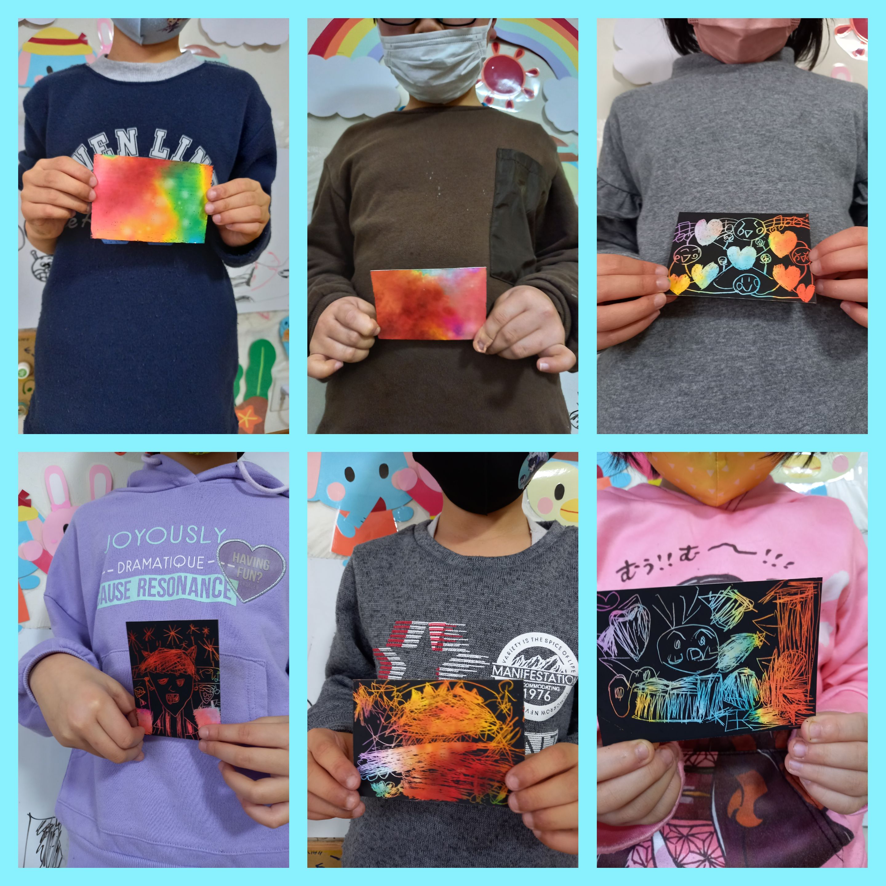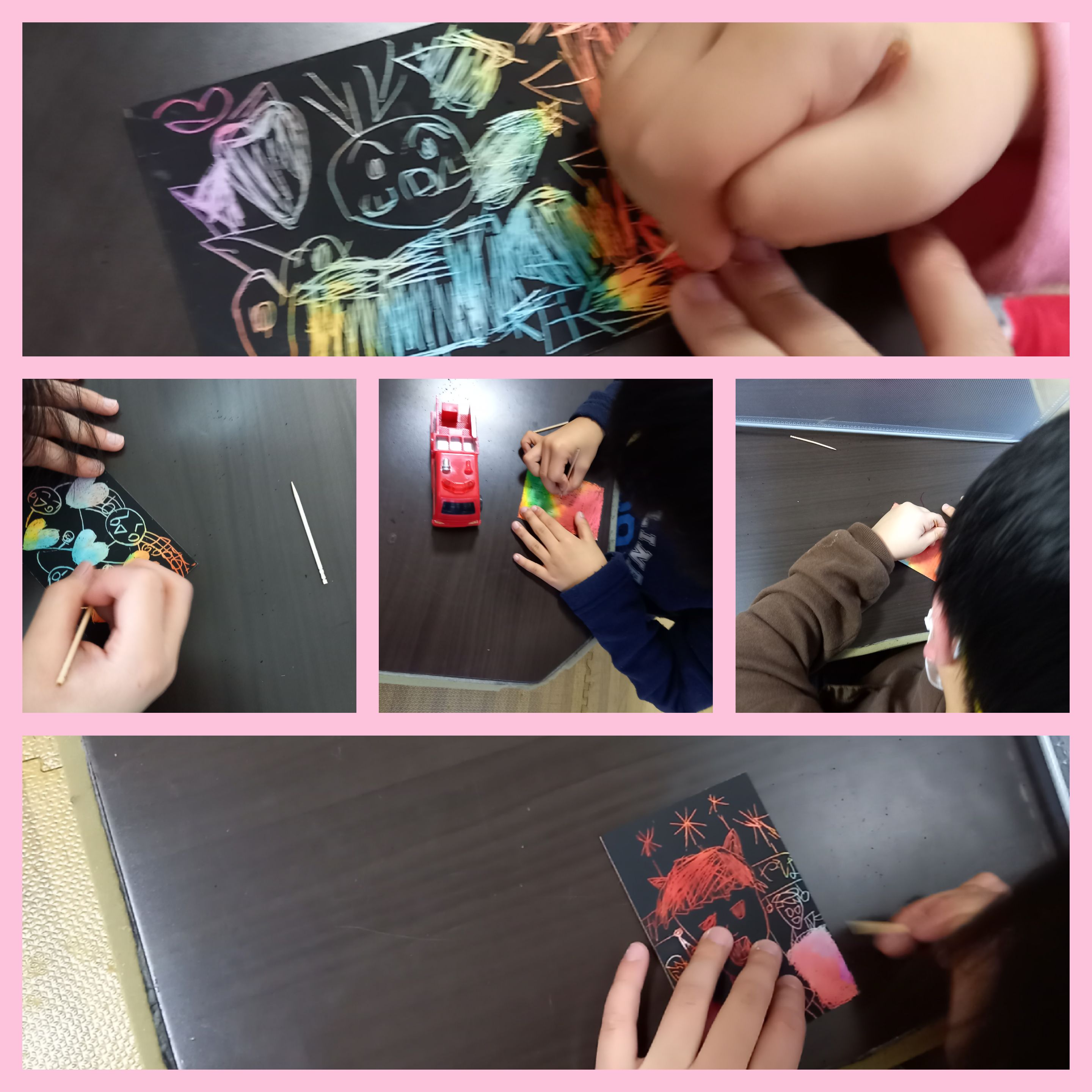 思い思いに削りながらオリジナルスクラッチアートの完成しましたよ\(^-^)/