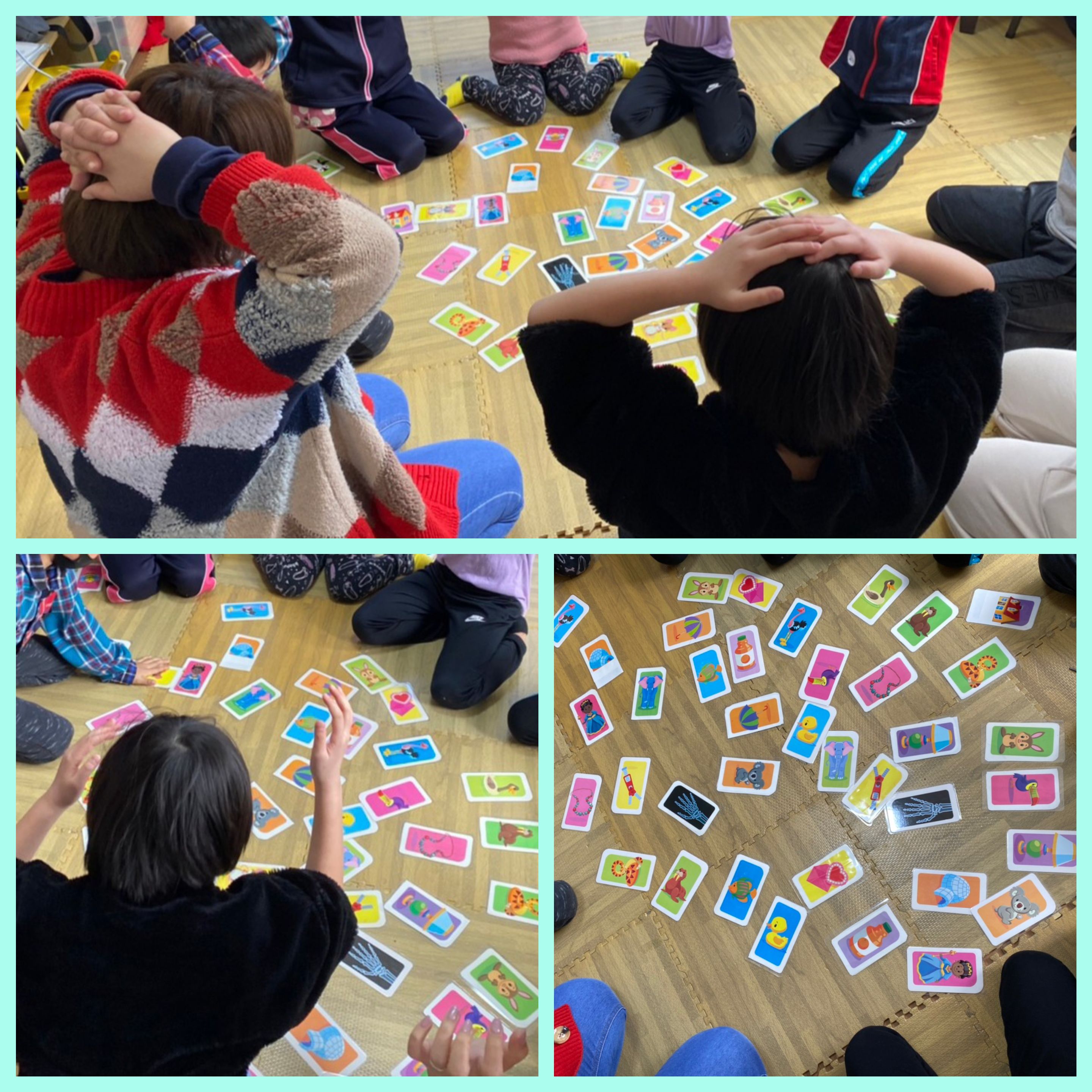 動物や野菜、果物バラバラになってるカード組み合わせられるかな?(*^^*)