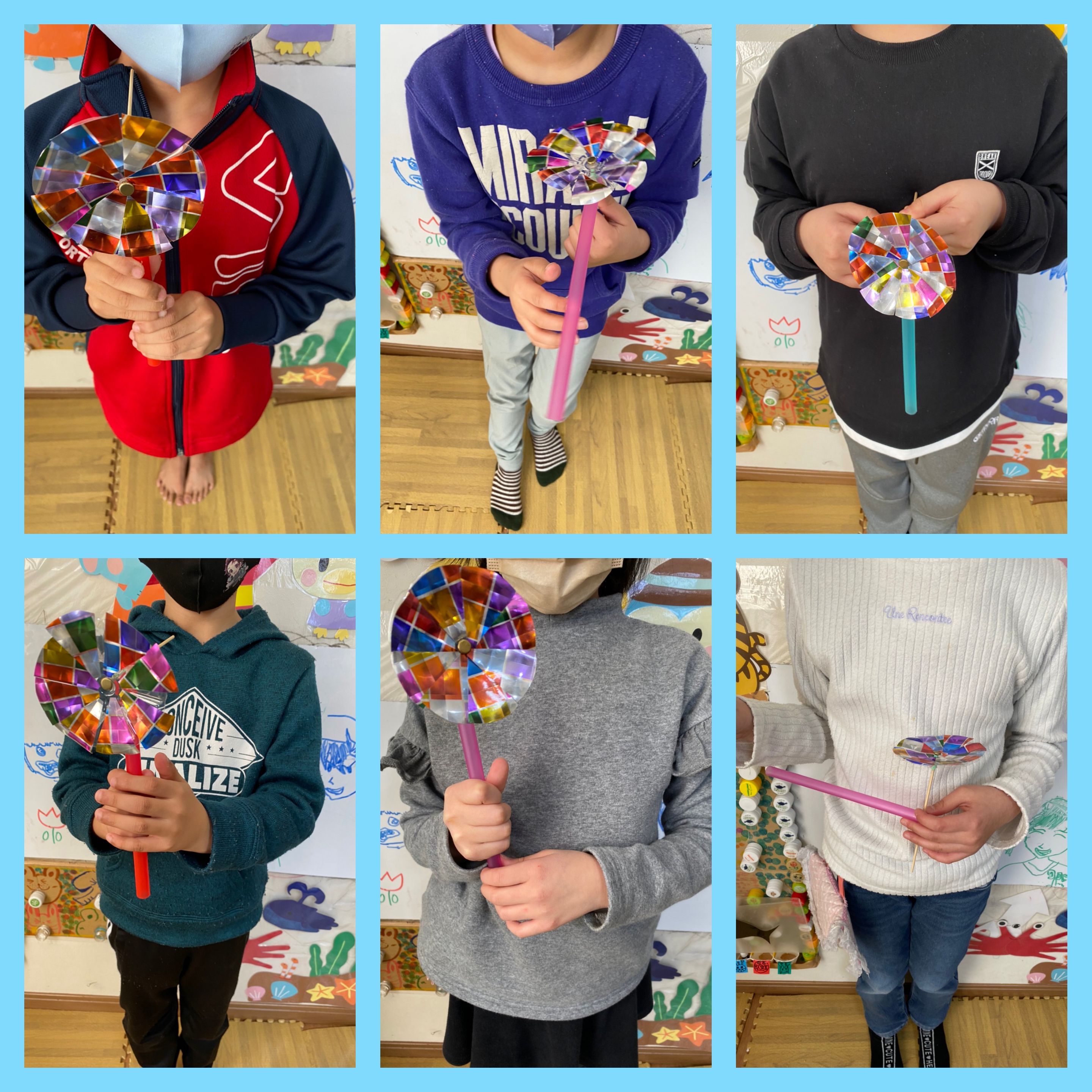 風車のようにキラキラ輝く手作りクルクルおもちゃの完成!