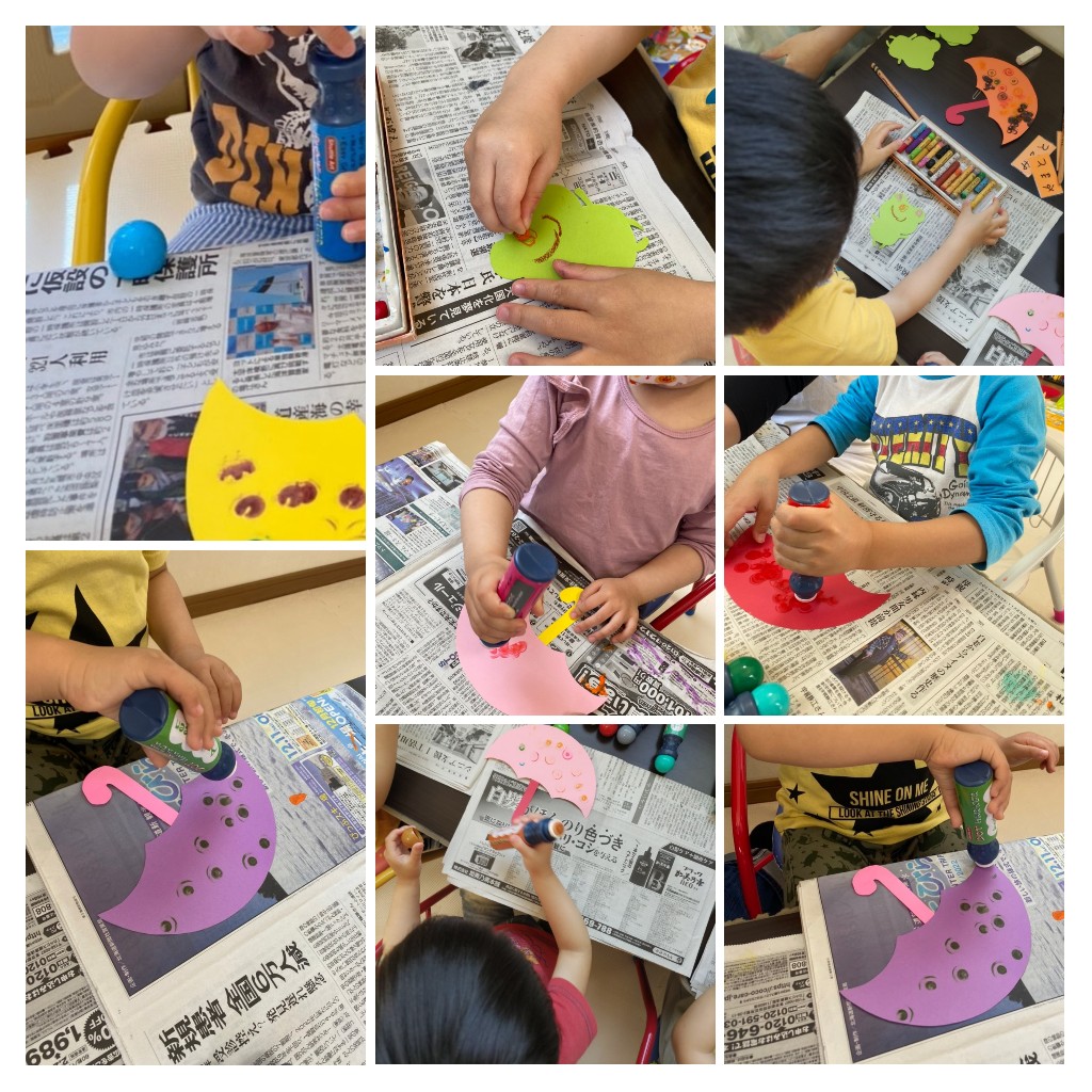 お友達の傘を見てもっとポン!ポン!しよー!と気合いの入る子がいて、最後にはみんなで出来たー!!