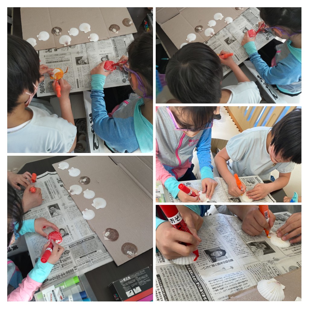 とホタテアートに挑戦した女の子達(◍•ᴗ•◍)❤