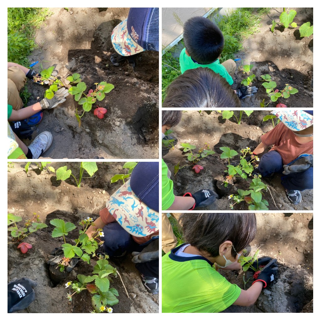 イチゴの苗植えをしました。