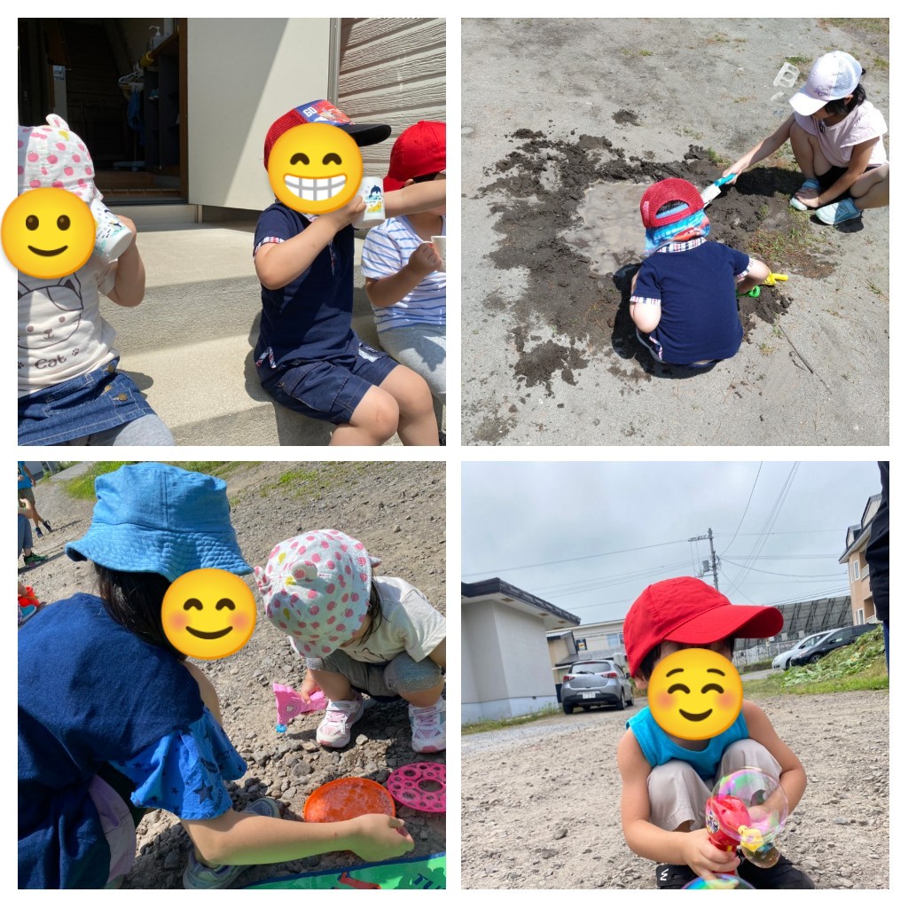 水分補給しながらシャボン玉や砂遊び等楽しみました。