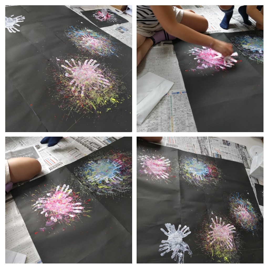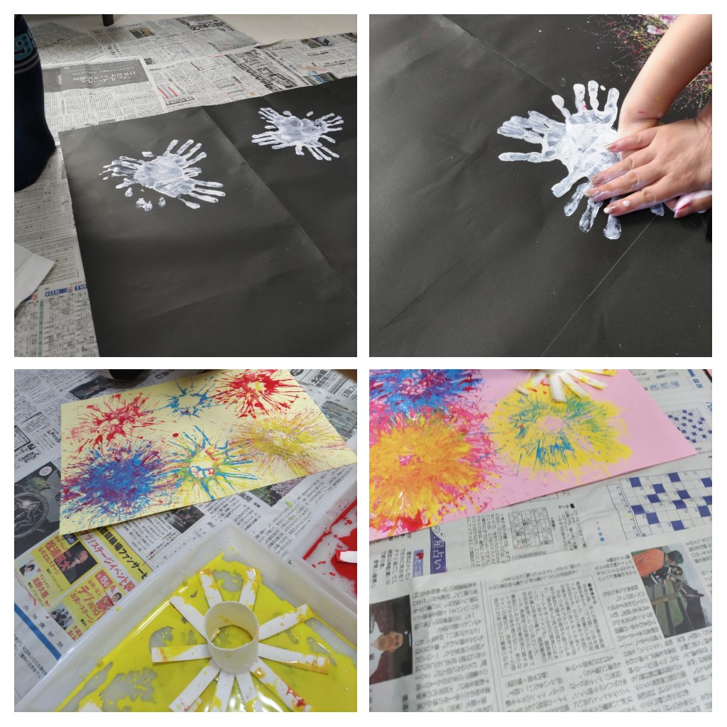 手の平に白い絵の具を塗ってペタ!ペタ!