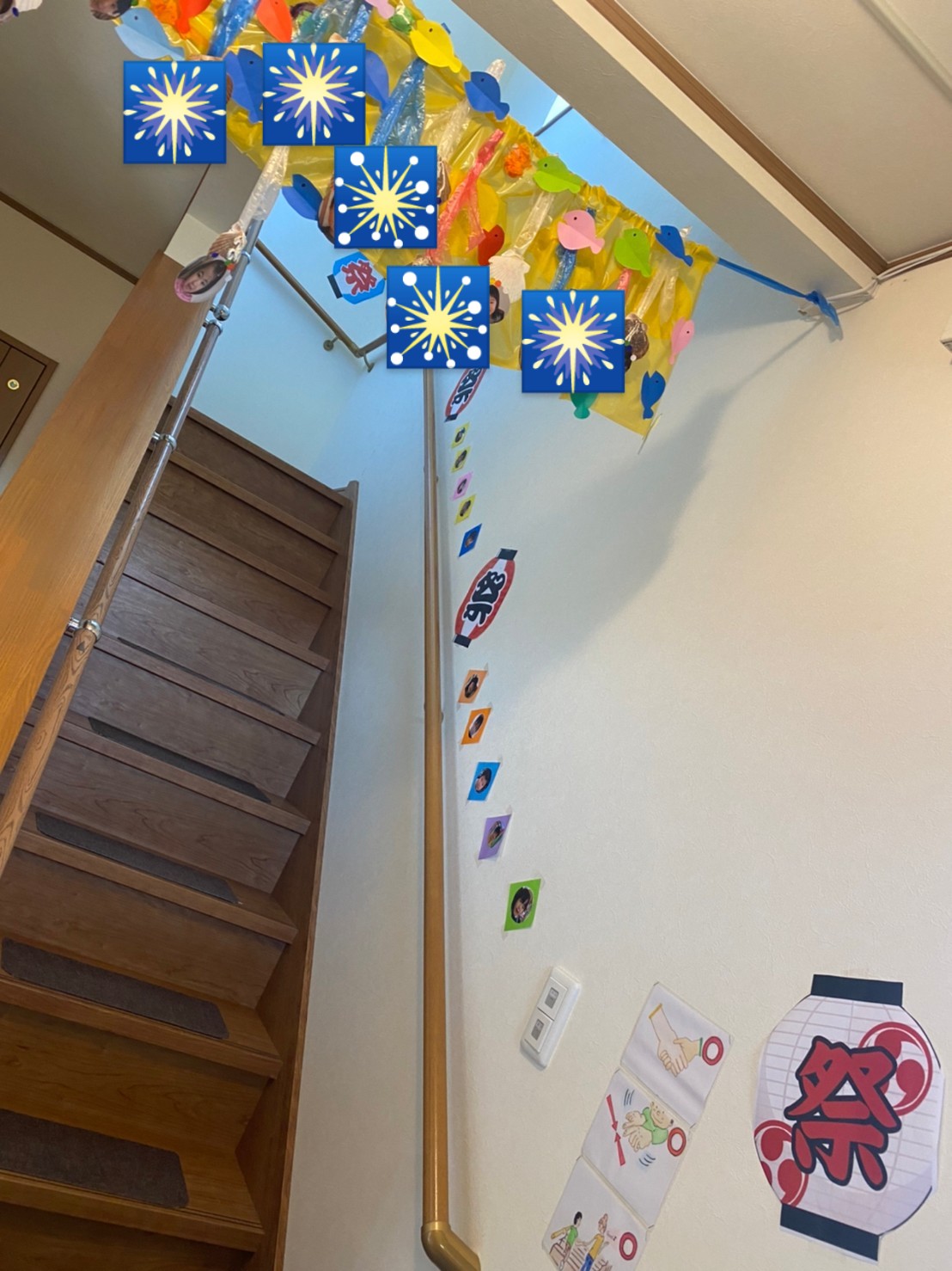 2階に行くまでにも様々な飾りつけがありますね!