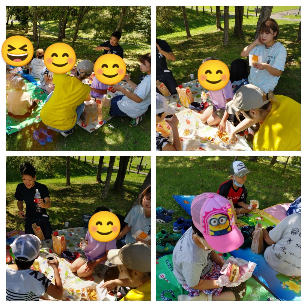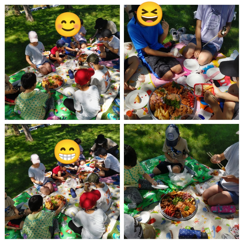 快晴のあおぞらの下でみんなでお昼ごはん♪ \(^ω^\ )