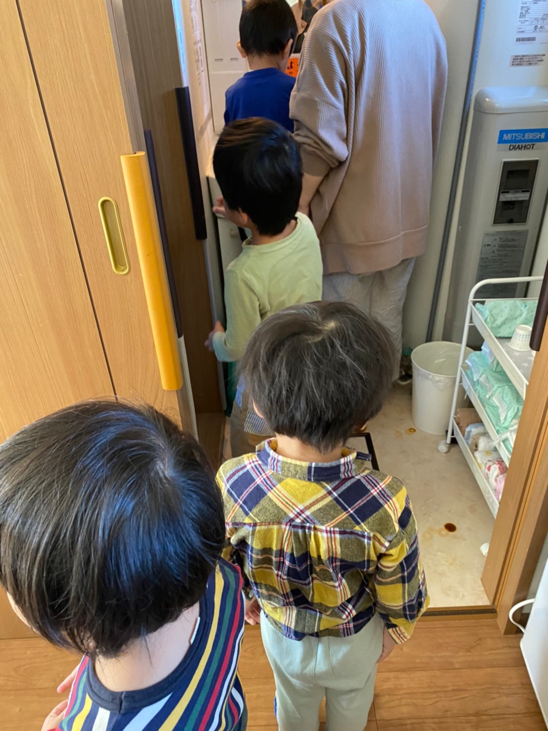手洗い、うがい順番待ちして並んでますねー(◔‿◔)↓↓