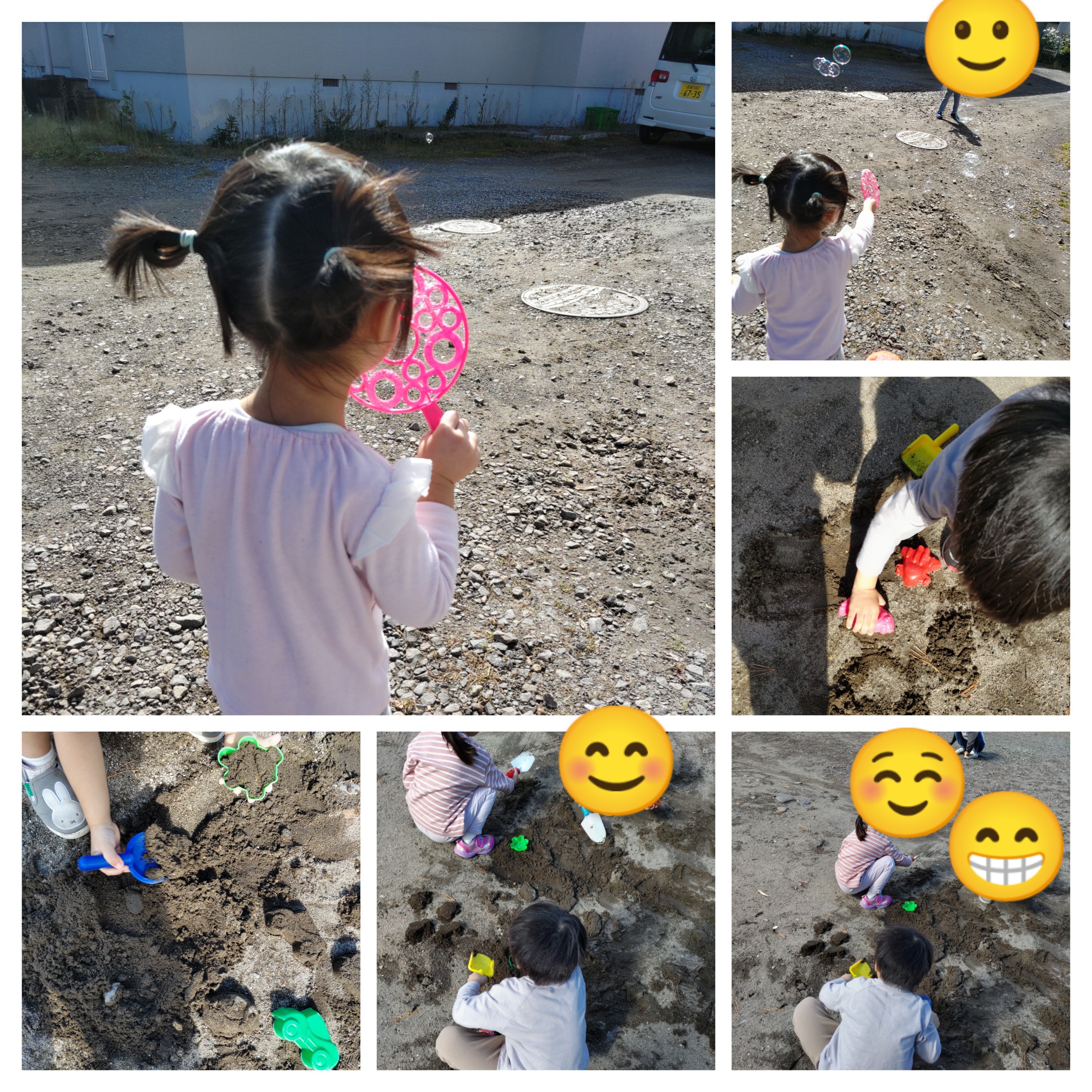 シャボン玉や砂遊び、飛行機飛ばし等楽しみました。