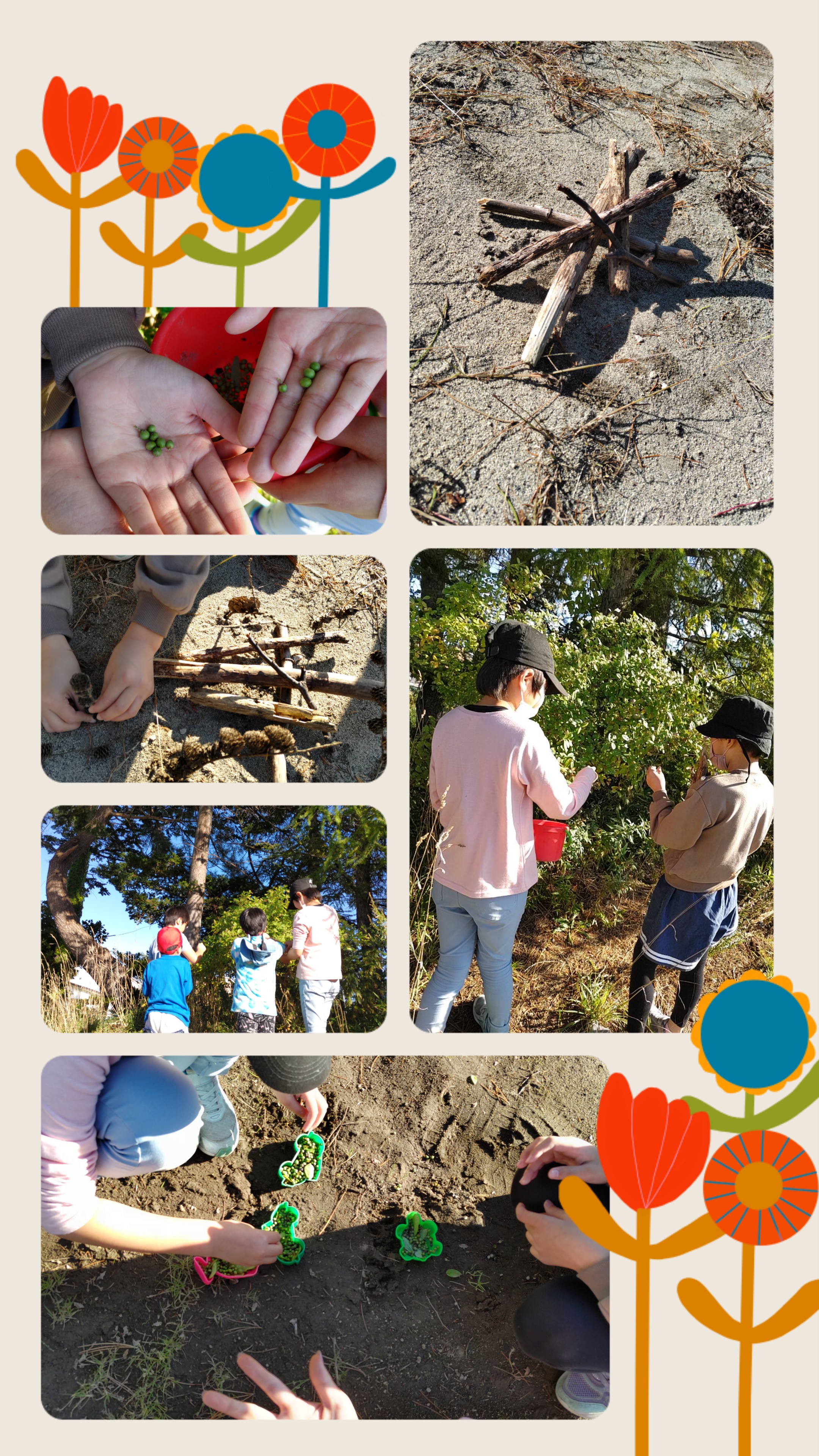 木の実集めや木の枝を集めてサバイバル遊びを楽しみました。