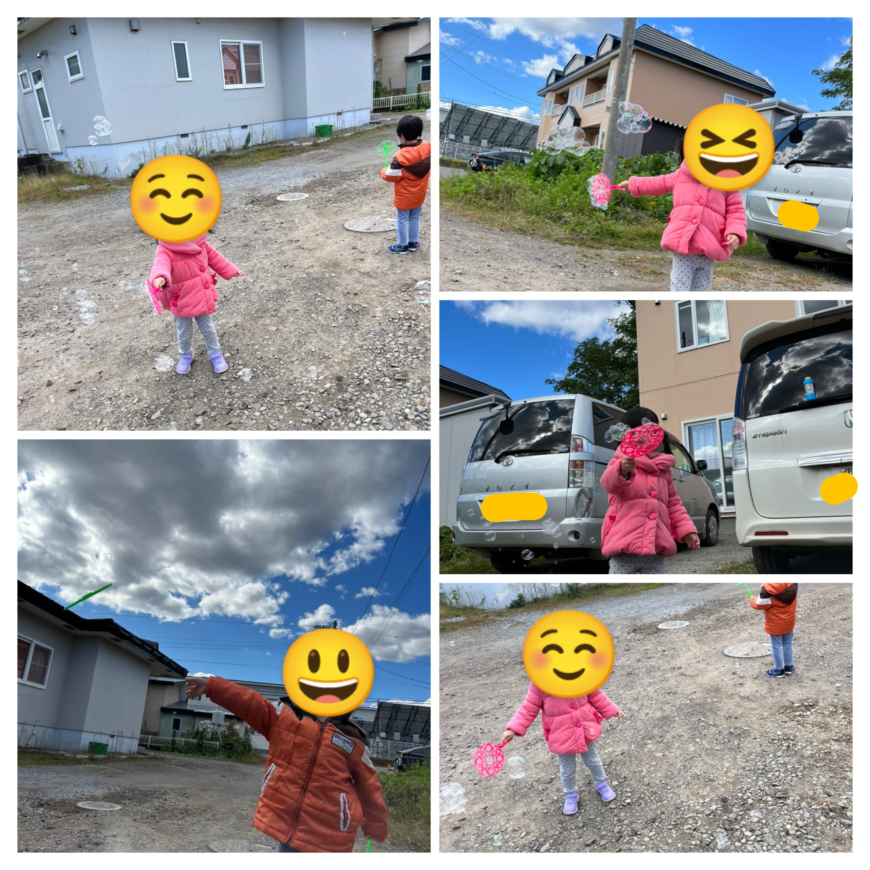 快晴の日は事業所前でシャボン玉や砂遊びを楽しみました(◍•ᴗ•◍)