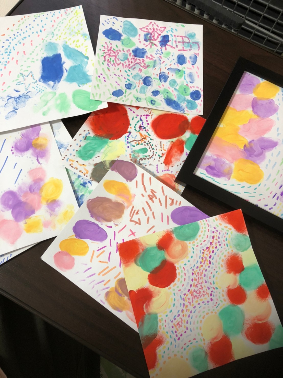 線と点、指先のグルグル絵の具で個性溢れる作品になりました⁽⁽ଘ( ˊᵕˋ )ଓ⁾⁾