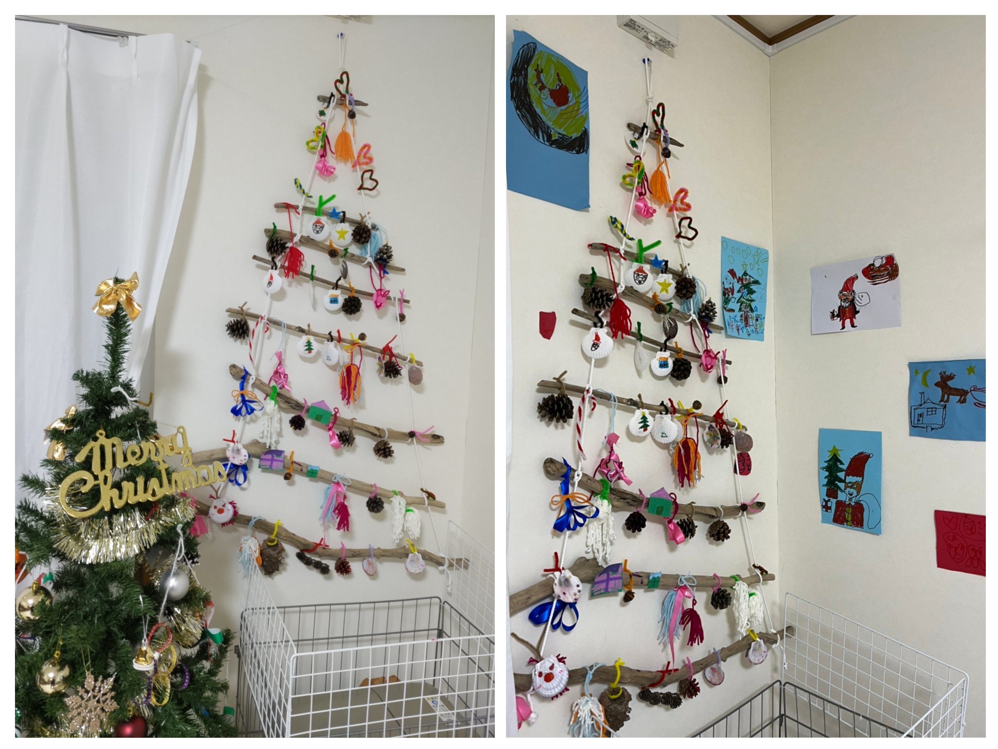 キラキラ輝くオリジナルクリスマスツリーデコレーション完成でーす( /^ω^)/♪♪
