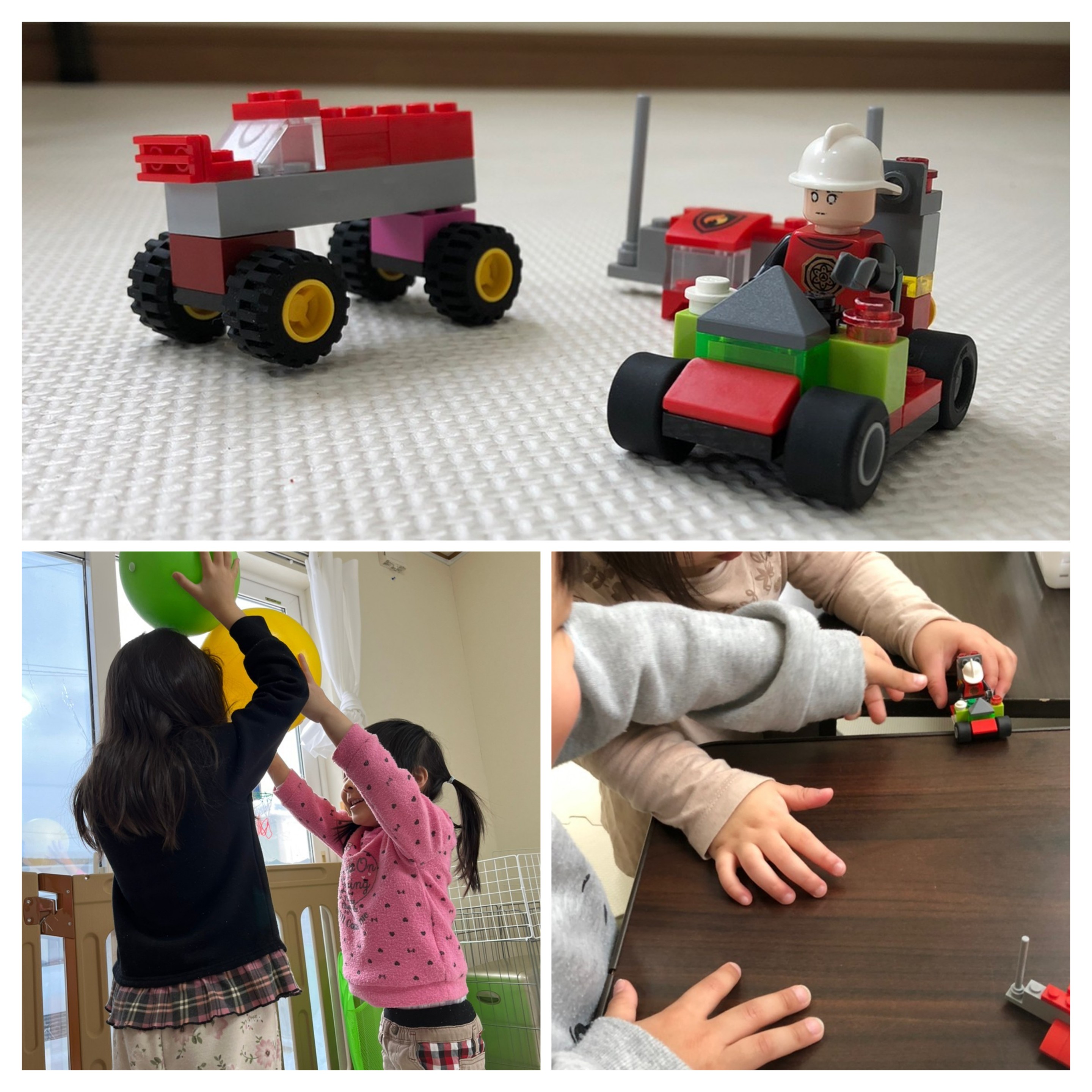 ミニブックで車を作りストーリーを展開させお友達との会話を楽しんだりボール遊びを楽しむ姿、はしゃぎ声が沢山(≧▽≦)
