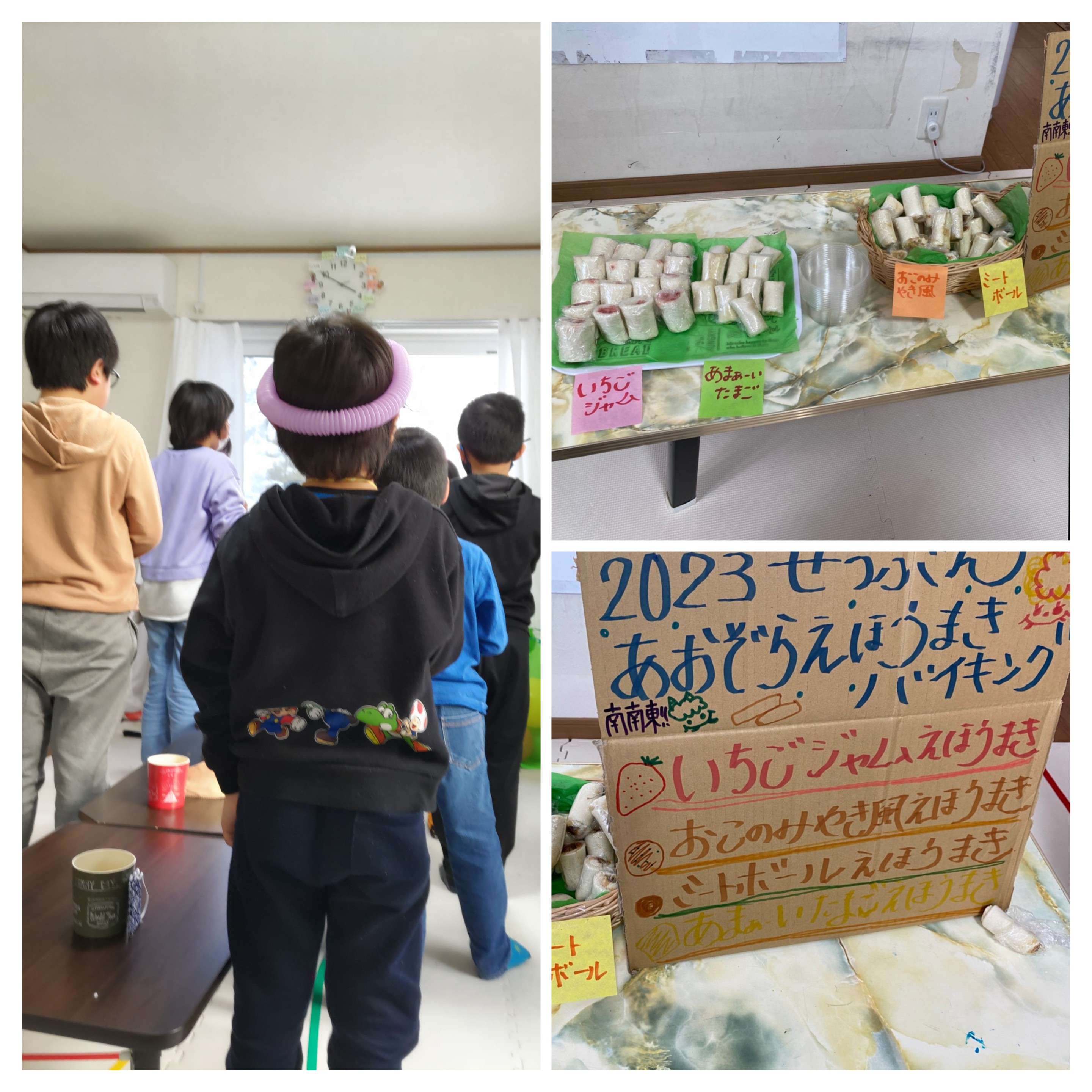 今年も食パンで恵方巻風に作りバイキングにしました。