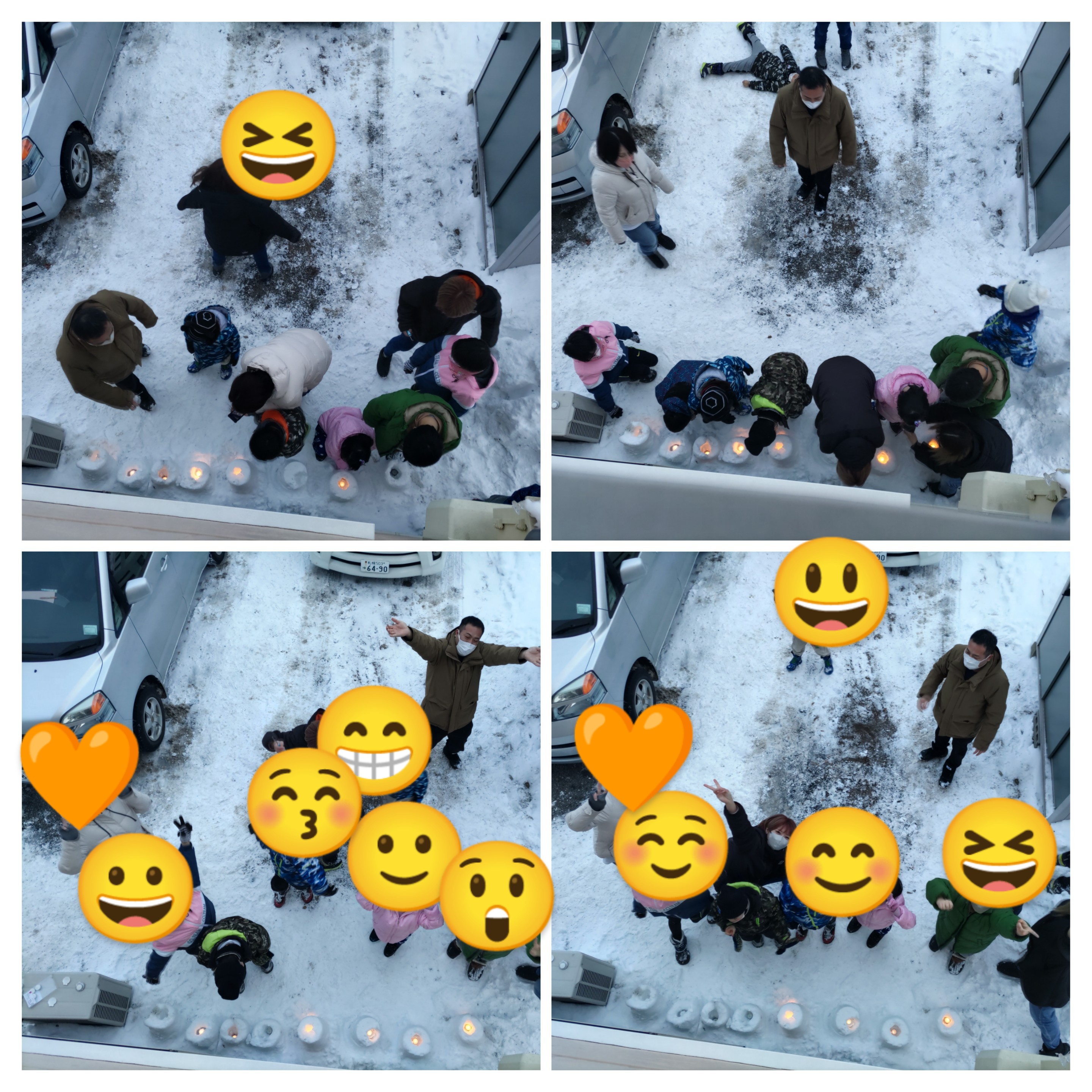 風で消えてしまわないように守り続ける子や、ジ〜と見つめ続ける子。今年初挑戦したスノーキャンドル来年もまた作ろうね⁽⁽ଘ( ˊᵕˋ )ଓ⁾⁾