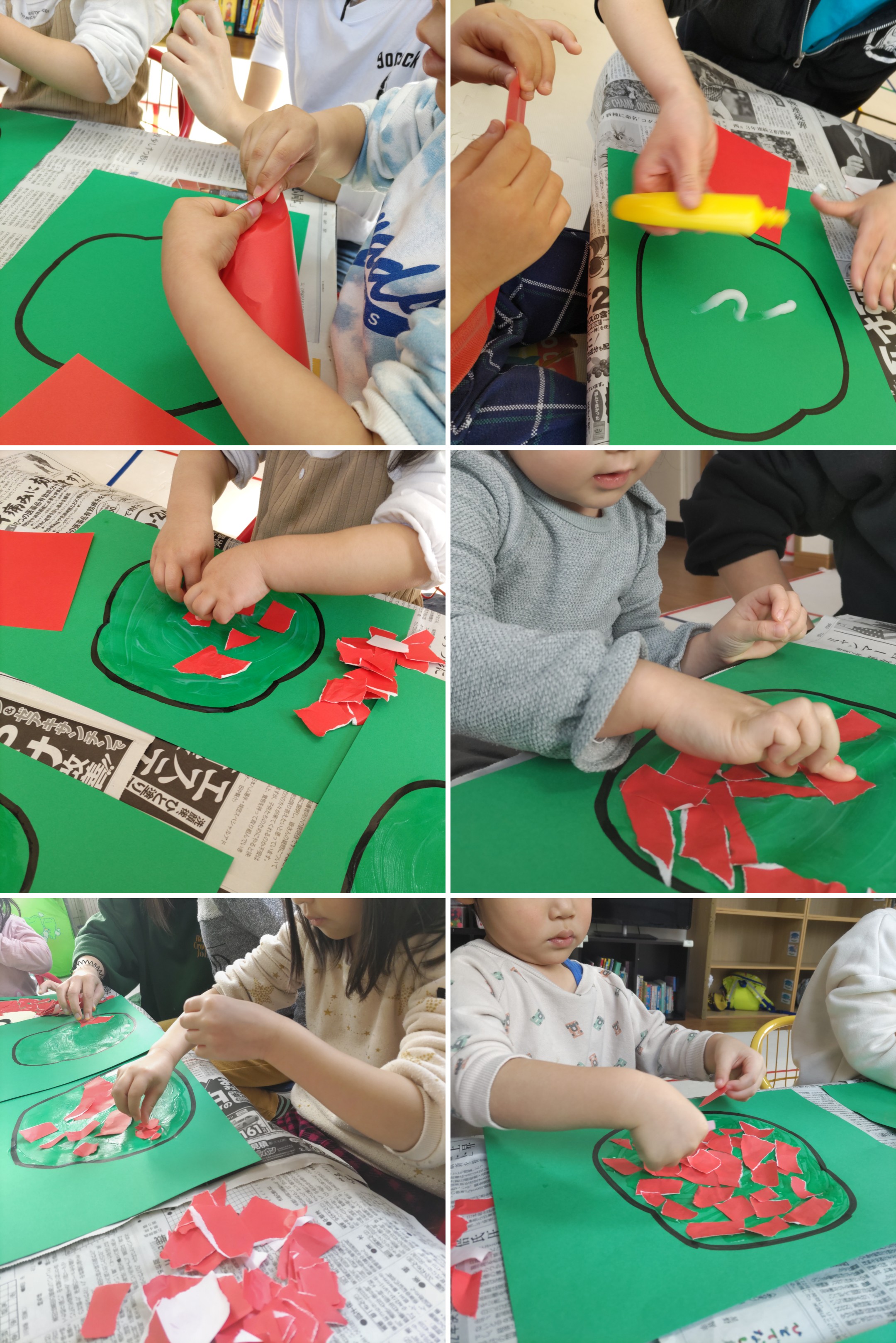折り紙をちぎりペタ!ペタ!