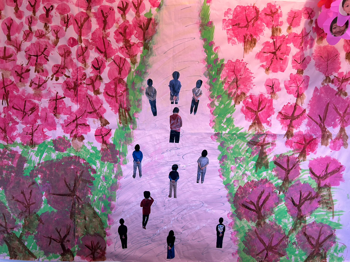 満開に咲き誇る桜並木を歩く子供達の姿が(*˘︶˘*).。*♡