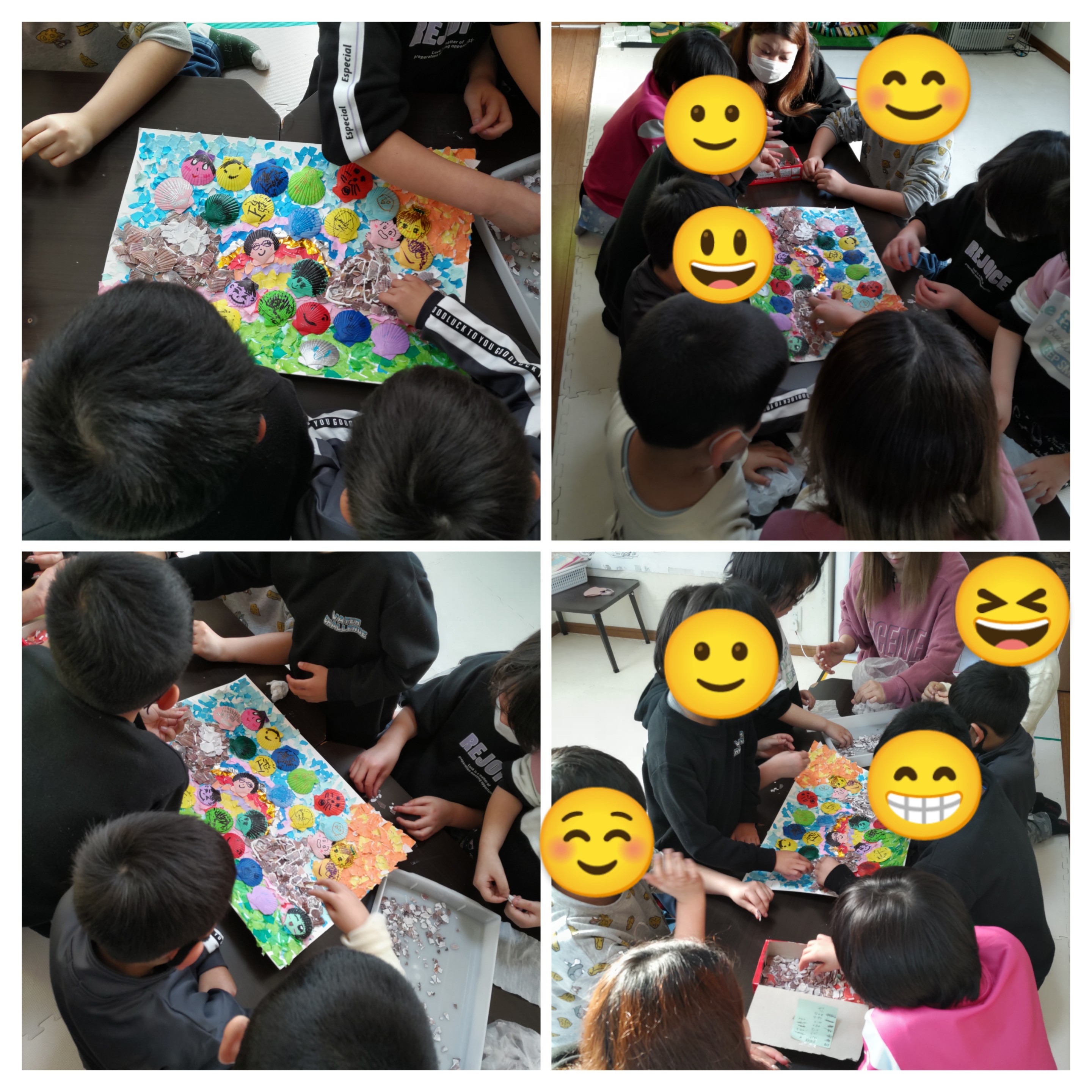地元特産物の一つホタテの貝殻を再利用し、あおぞら児童全員で1つの作品を作りました(^-^)/