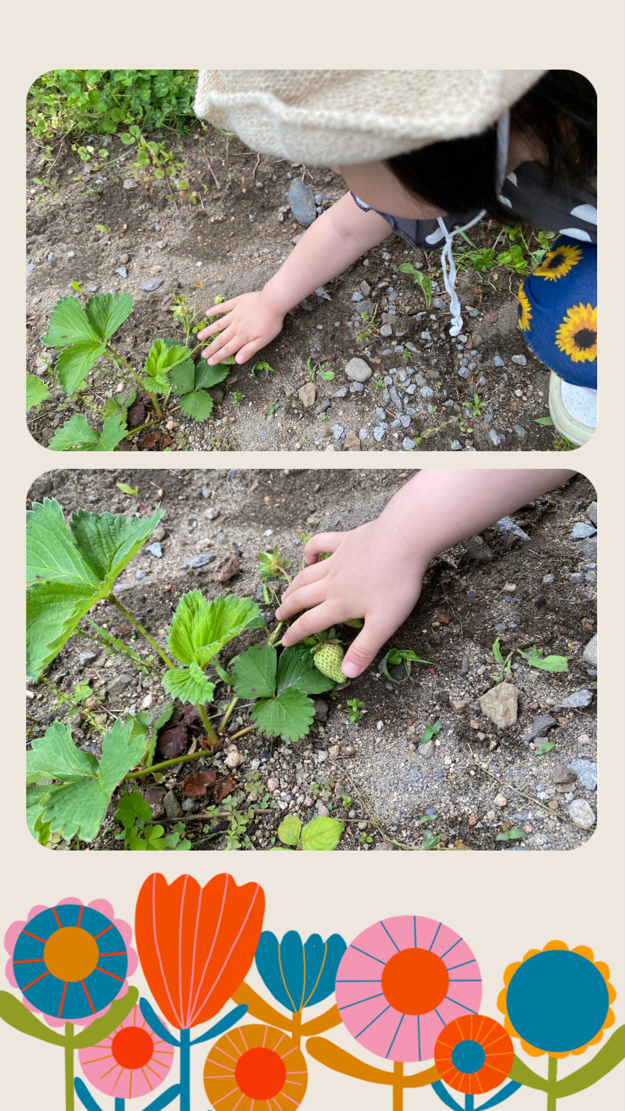 「いちごおーきくなーれ!」といちごを撫で撫で( ꈍᴗꈍ)