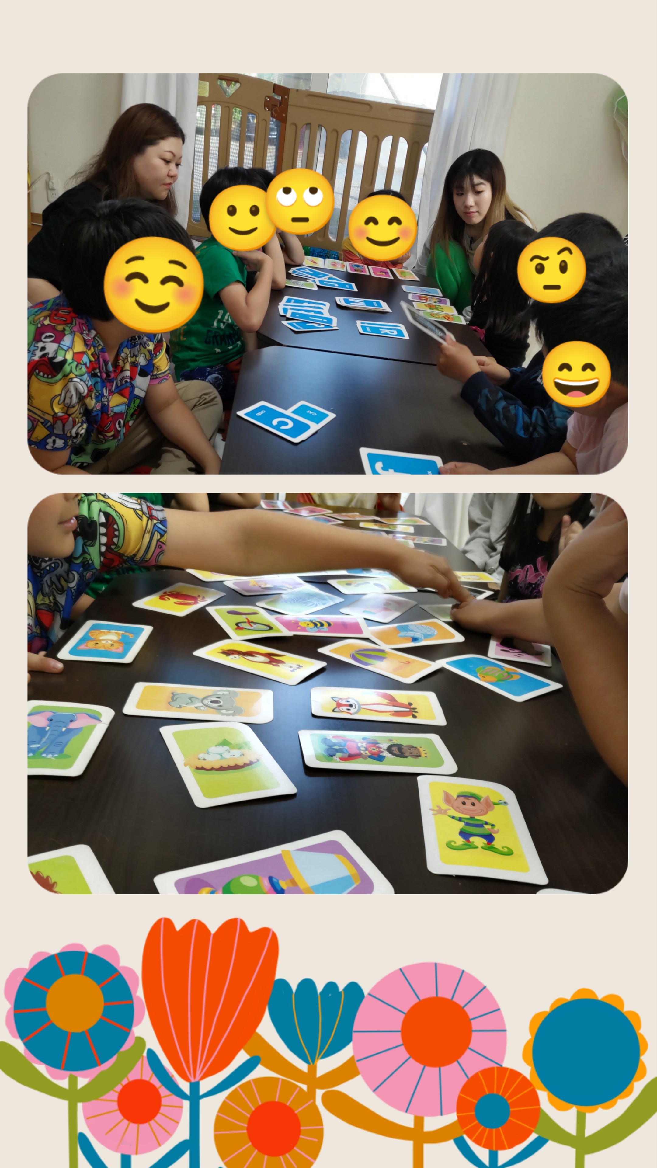 Teacherの単語を聞いてカードを探すアルファベットカルタに全員エキサイティングᕙ(⇀‸↼‶)ᕗ